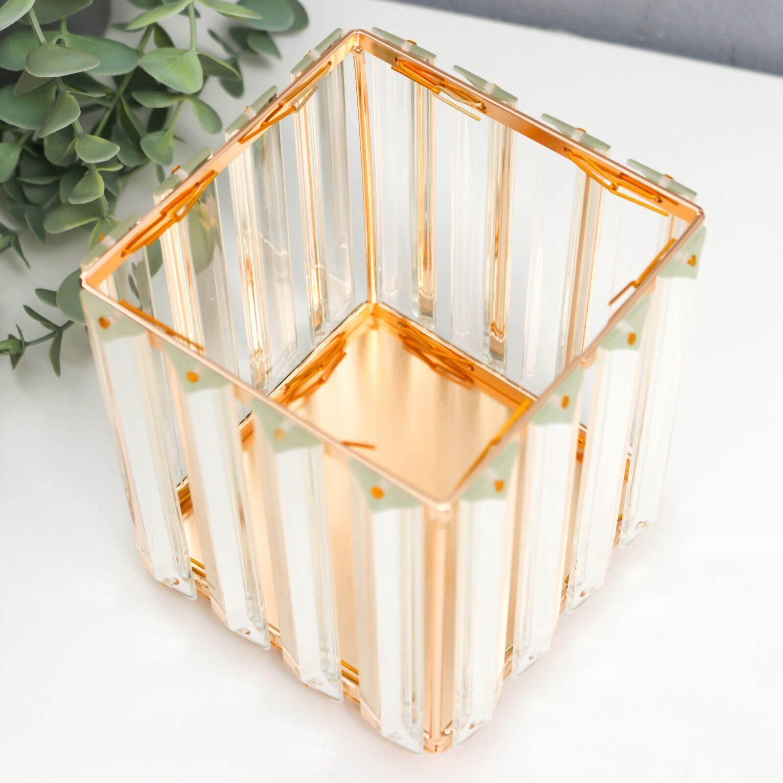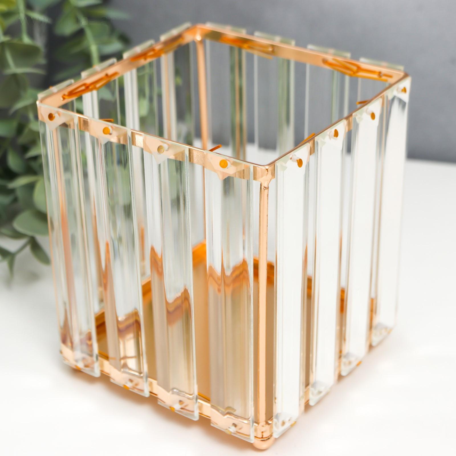 Подсвечник металл на 1 свечу "Кристаллы" квадрат золото 12,5х11,5х11,5 см