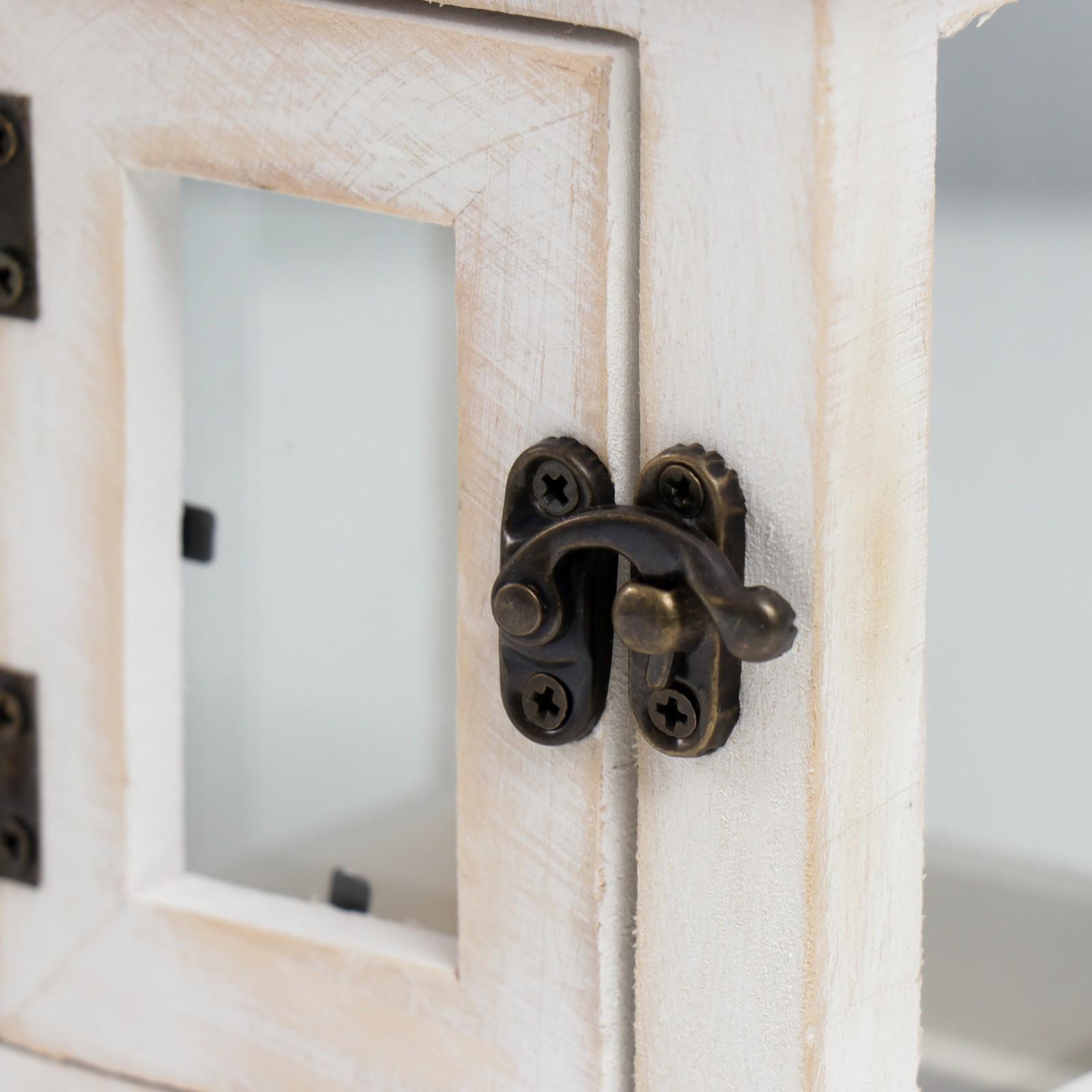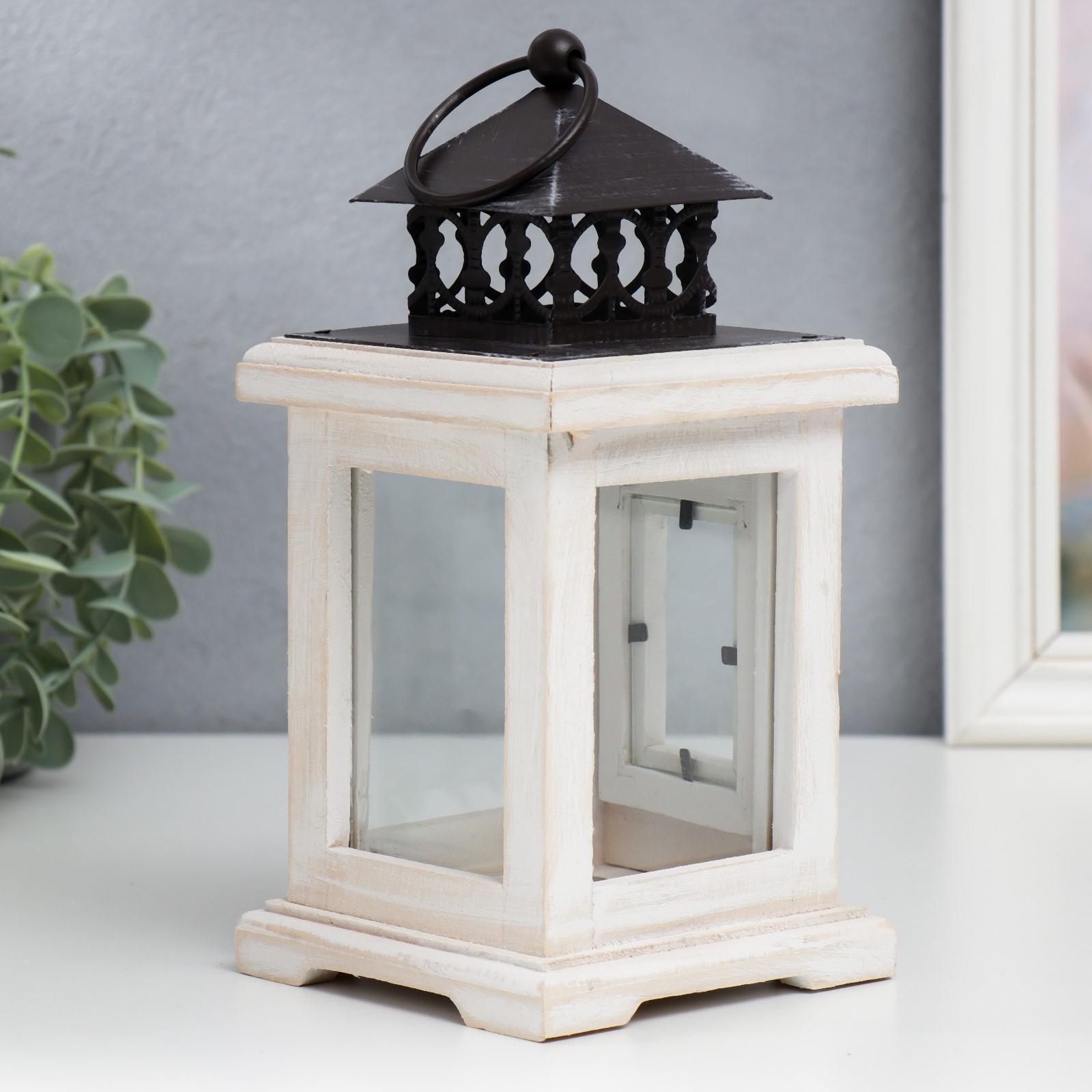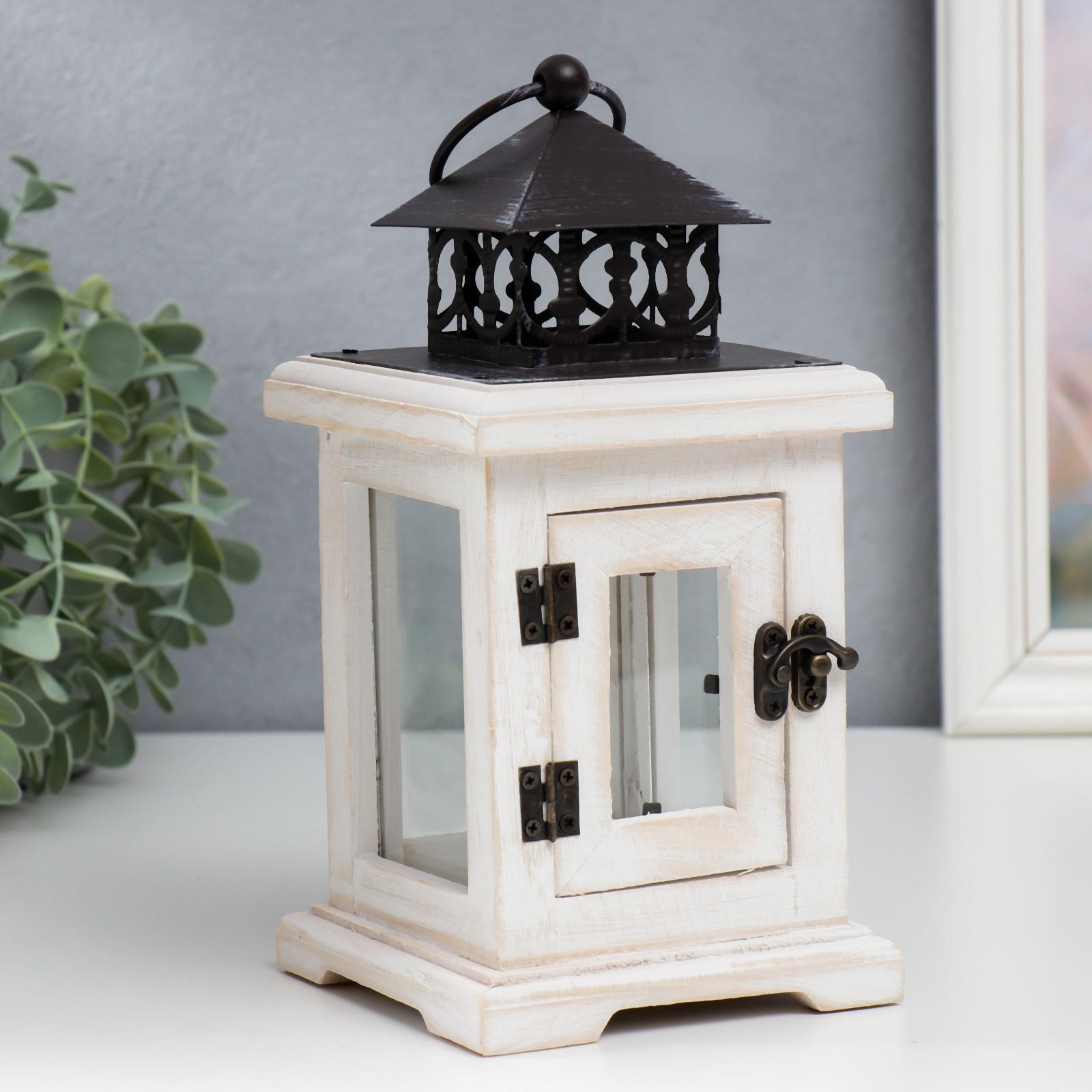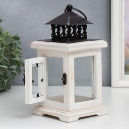 Подсвечник дерево на 1 свечу "Фонарь с дверцей" белый состаренный 22х12х12 см