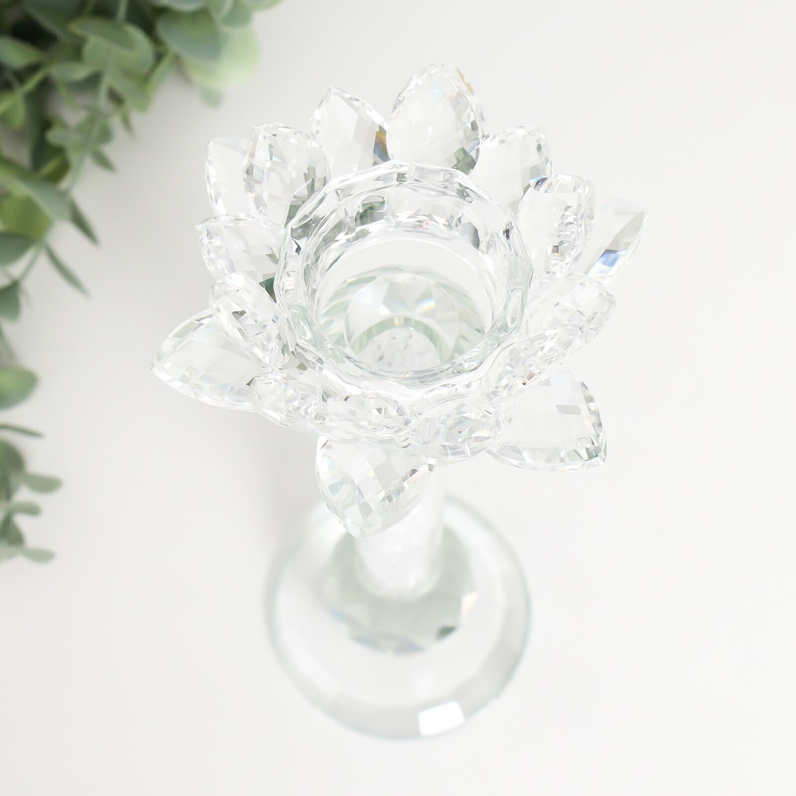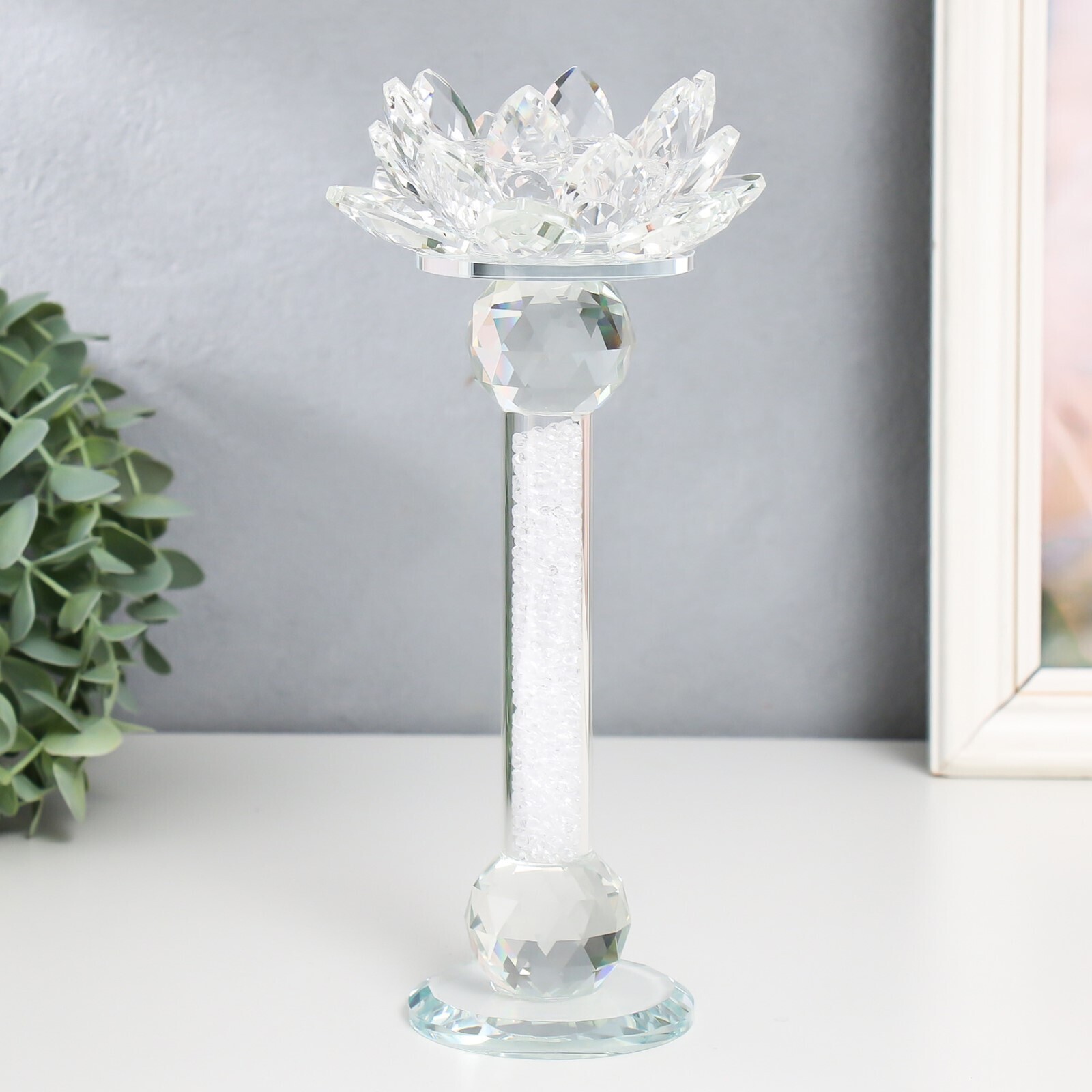 Подсвечник стекло на 1 свечу "Лотос на ножке с кристаллами" d-4 см 12х8х23 см