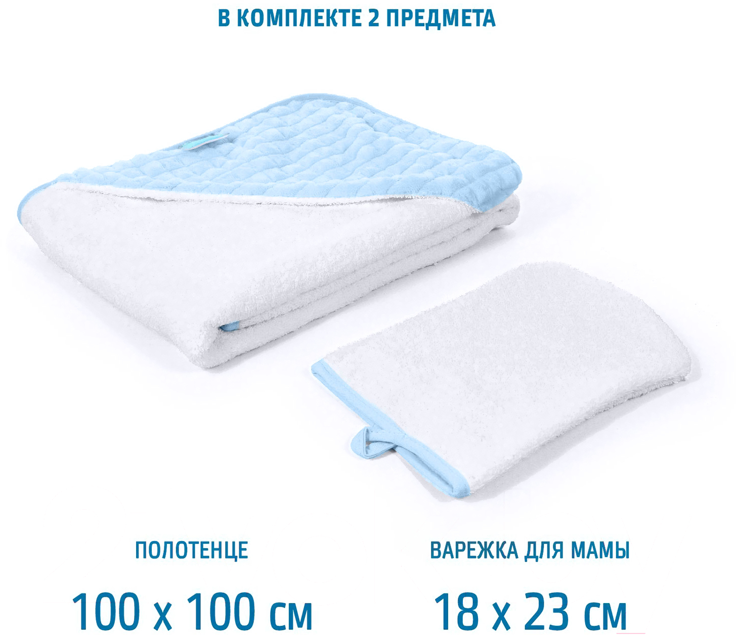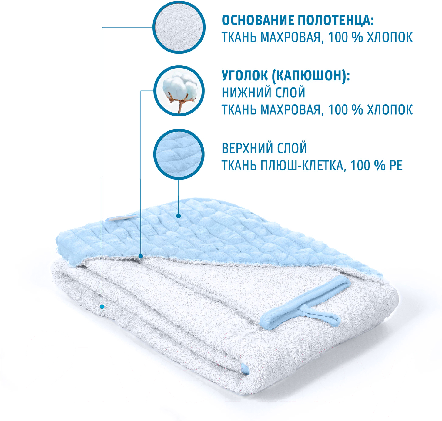 Полотенце с капюшоном Nuovita Grazia с варежкой (махра/плюш-клетка, белый/голубой)