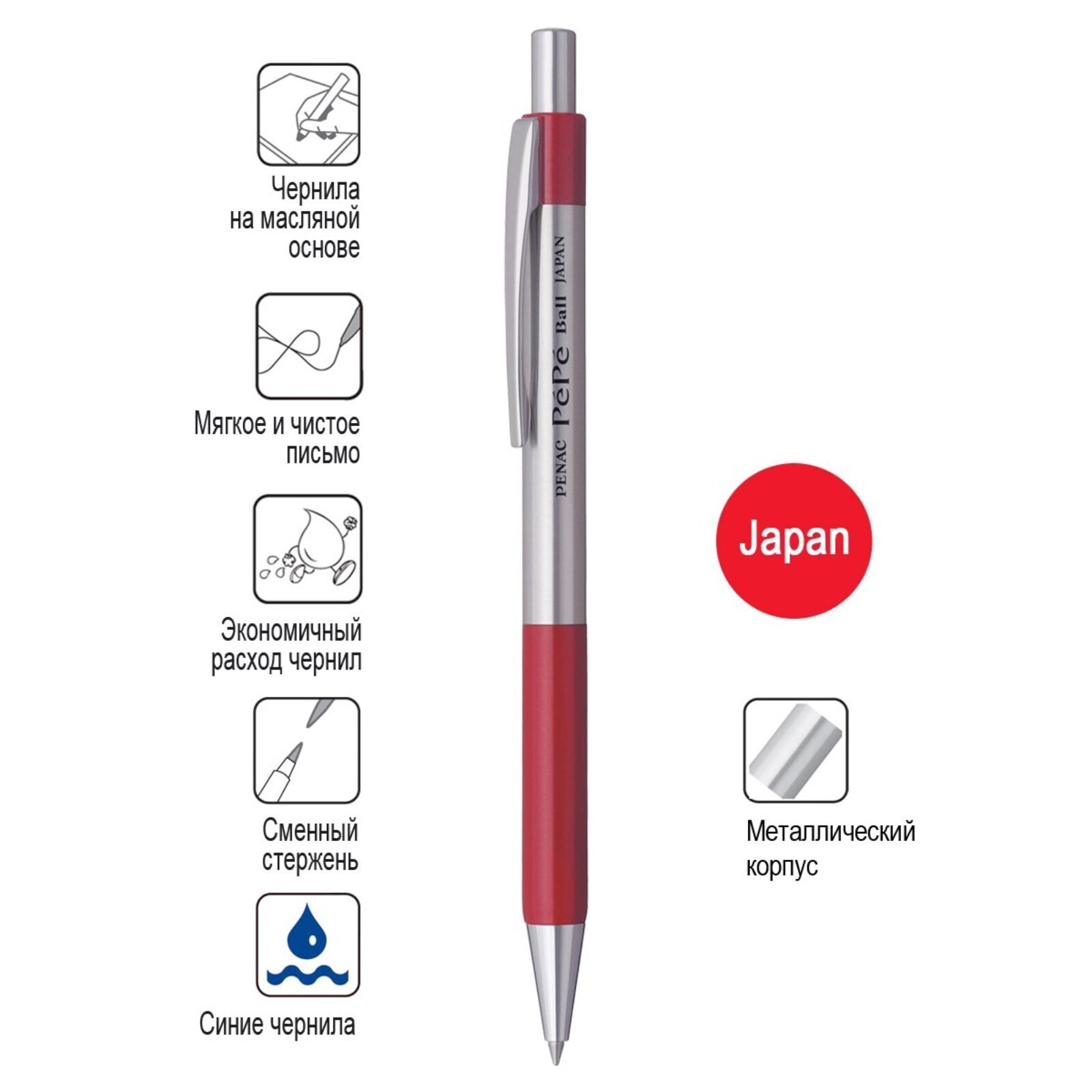 Надежная и долговечная металлическая шариковая ручка 0,7 мм для школы и офиса японского бренда Penac (Пенак). Цвет чернил синий. Сменный стержень с масляными чернилами. Корпус из нержавеющей стали служит долго, система подачи стержня работает безотказно, прочный клип надежно крепит ручку PePe (Пепе) к ежедневнику или карману пиджака. Благодаря особой формуле чернил на масляной основе пишущий узел ручки оставляет линию более тонкую, чем пишущий узел любых других шариковых ручек с таким же диаметром шарика, что существенно сокращает расход чернил. Тонкая красивая шариковая ручка на масляной основе обеспечивает невероятно легкое скольжение по бумаге, заметно увеличивая скорость письма. В пишущем узле находится шарик из карбида вольфрама, который не подвержен ржавчине и не деформируется даже при сильном нажатии или падении, поэтому ручка на протяжении всего срока службы не течет, не мажет при письме и пишет чисто и аккуратно. Чернила не проступают на другую сторону листа. Надписи механической ручки с масляным стержнем отличаются высокой светостойкостью.