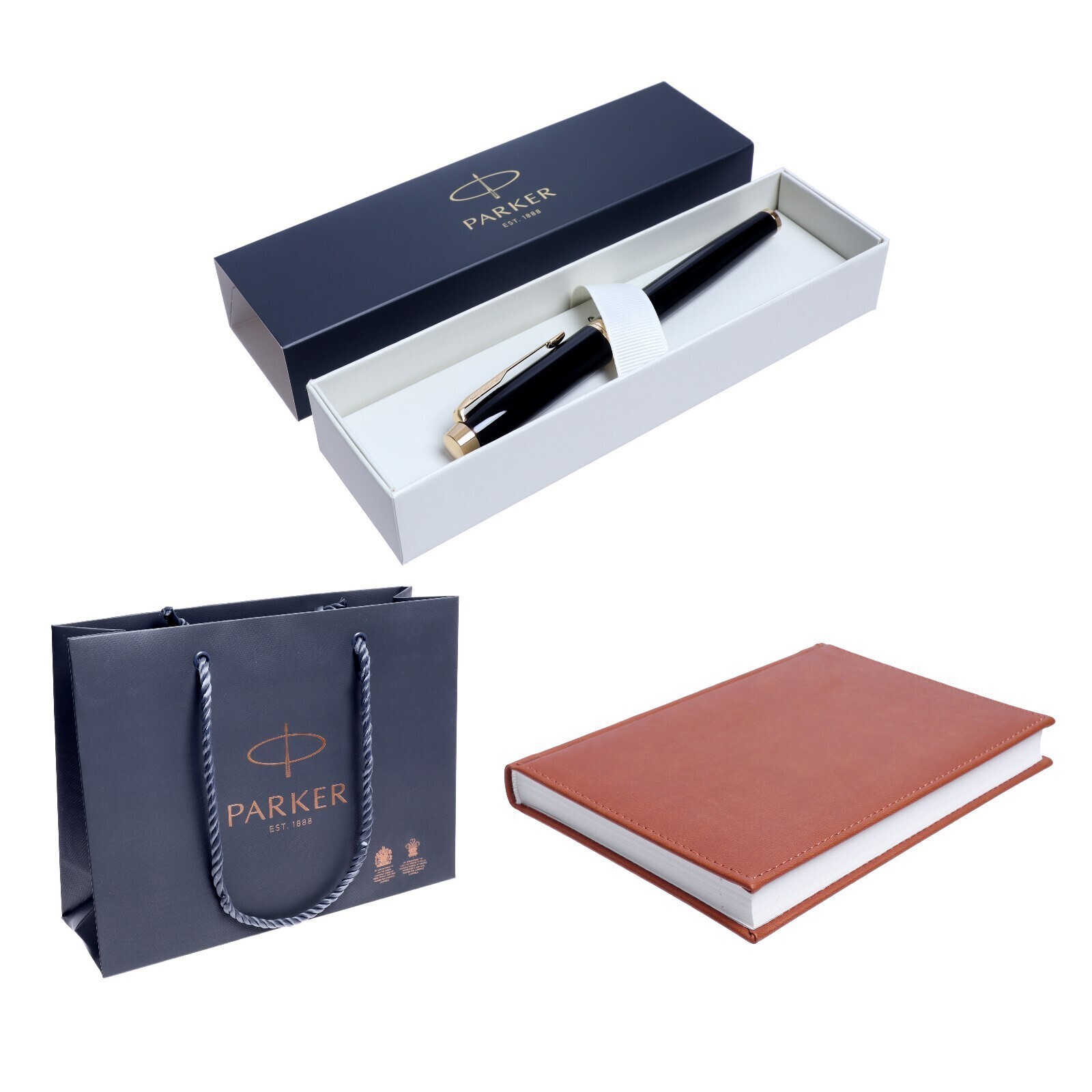 ПОДАРОЧНЫЙ набор Parker: ручка перьевая 1931645 + Ежедневник датированный 2023, коричневый (7609087) + ПОДАРОЧНЫЙ ПАКЕТ