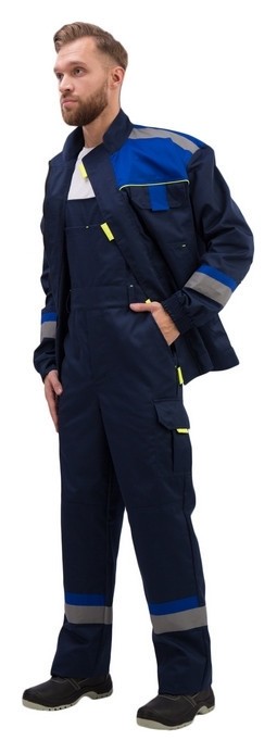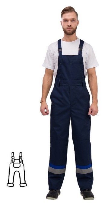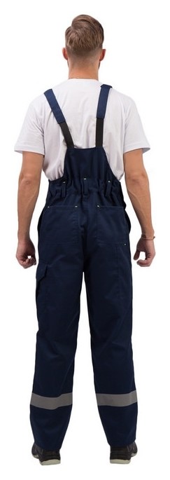 Спецодежда летняя полукомбинезон л24-ПК (размер 44-46, рост 182-188) синего цвета. Летний полукомбинезон изготовлен из смесовой ткани (35% хлопок, 65% полиэфир) плотностью 240 г/м2. Полукомбинезон прямого силуэта. По задней части полукомбинезона по талии - резинка. На грудке наличие кармана. Усиление в области колен. На каждой брючине светоотражающая полоса шириной 50 мм. Полукомбинезон рекомендован к использованию в промышленности (автомобильной, логистике, транспорте). Соответствует ГОСТ 27575-87.