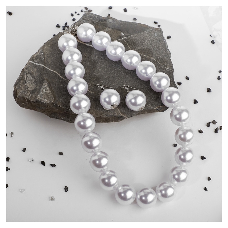 Набор 2 предмета: серьги, бусы "Жемчуг" крупные бусины, цвет белый
