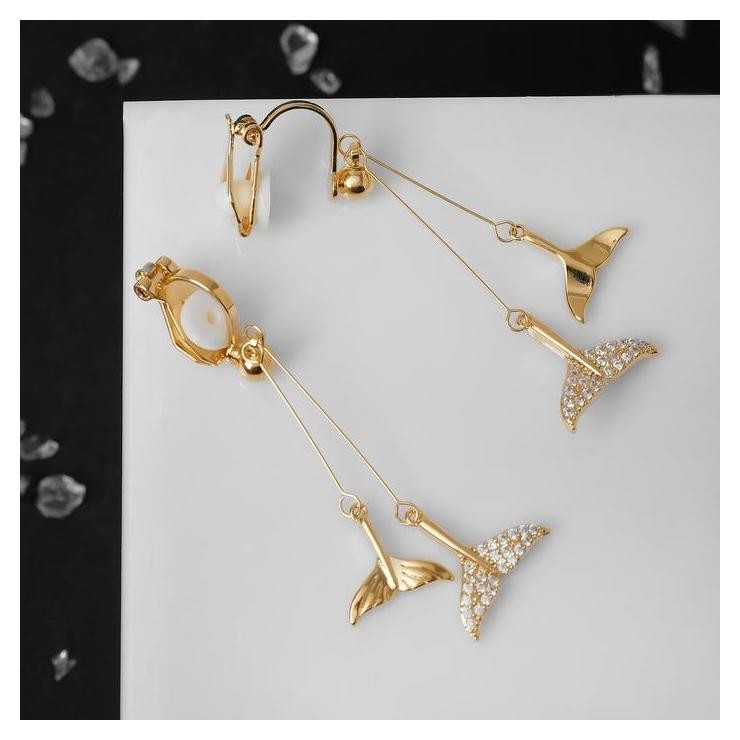 Клипсы "Чувства" китовый хвост, цвет белый в золоте