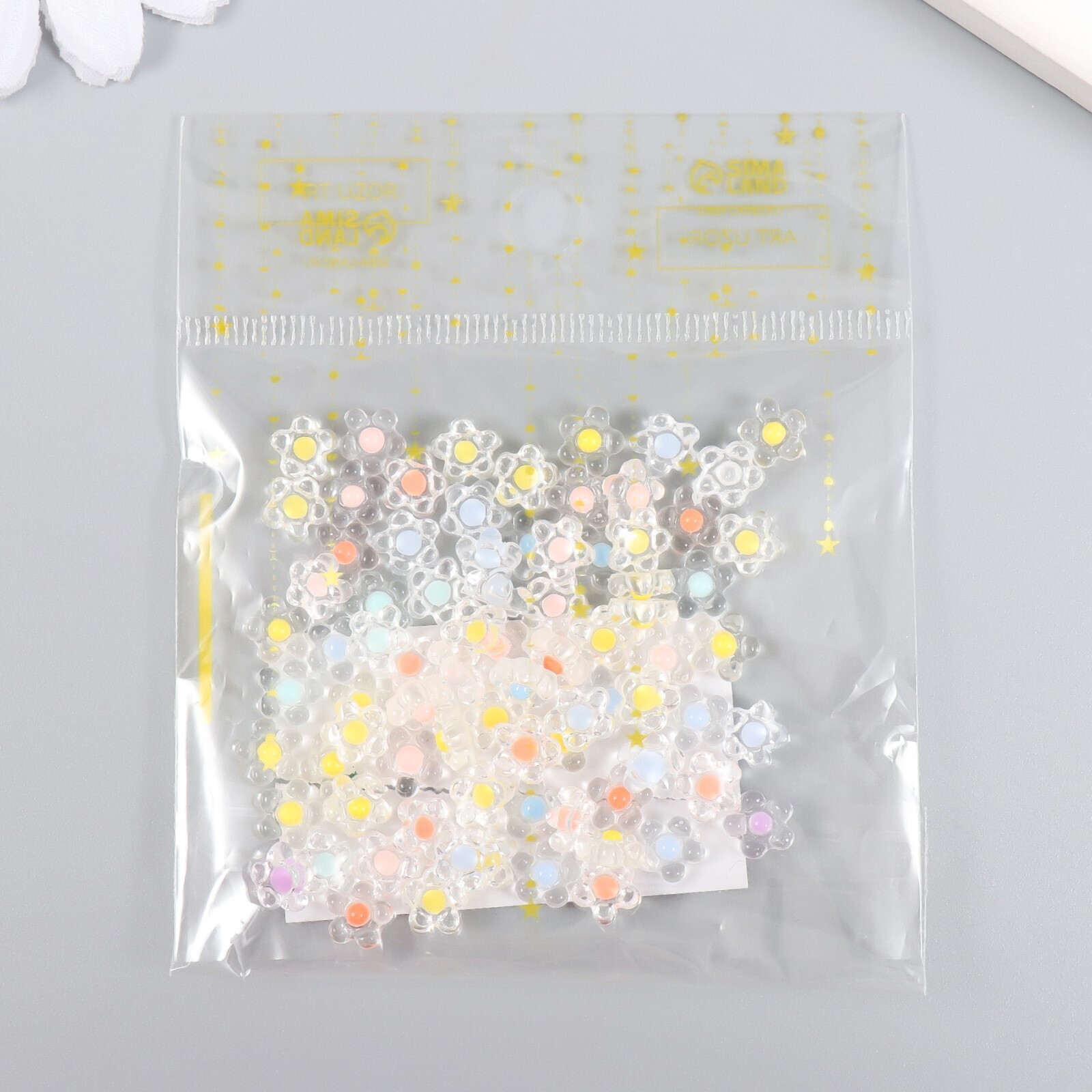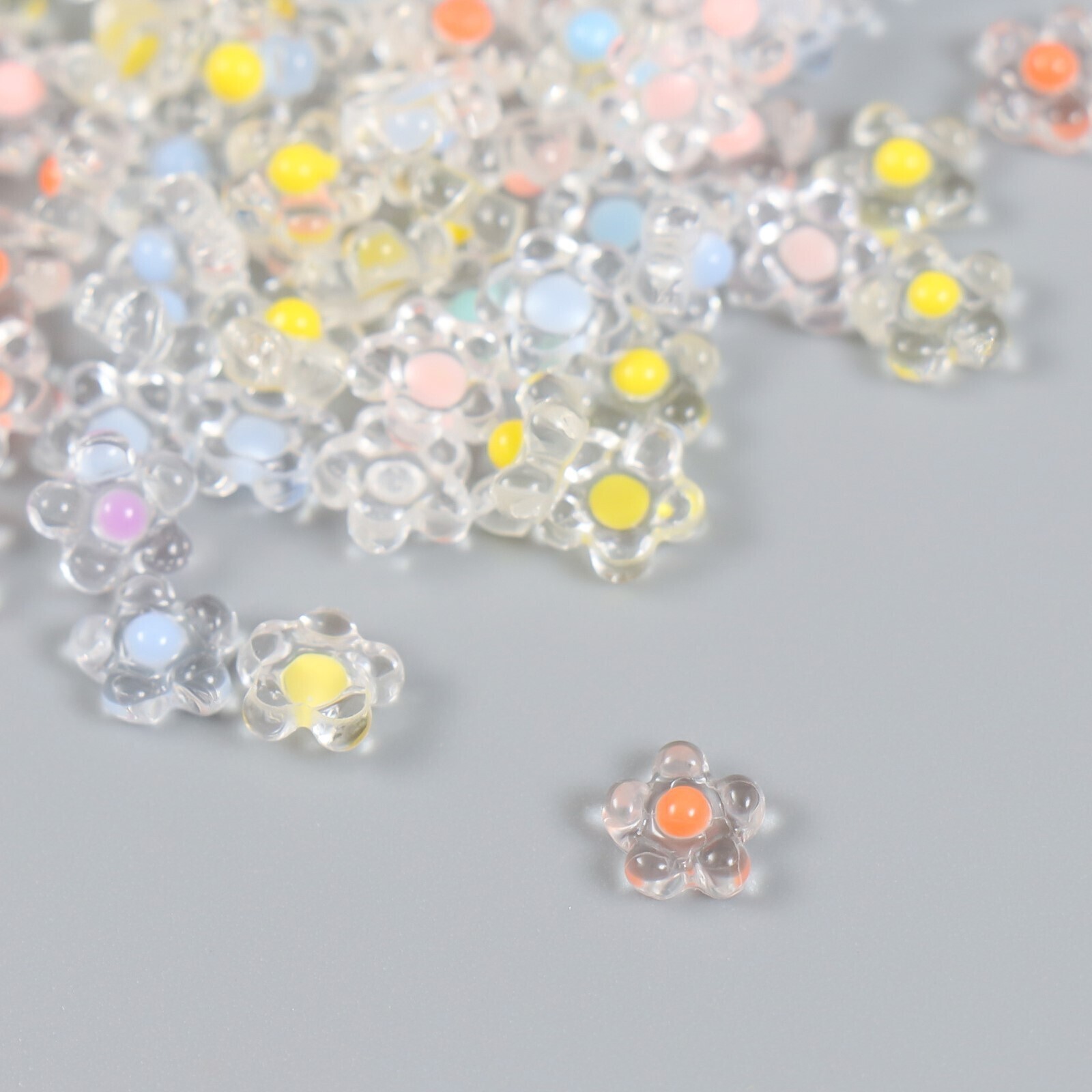 Декор для творчества пластик "Цветок с цветной серединкой" глянец набор 80 шт 0,7х0,7 см