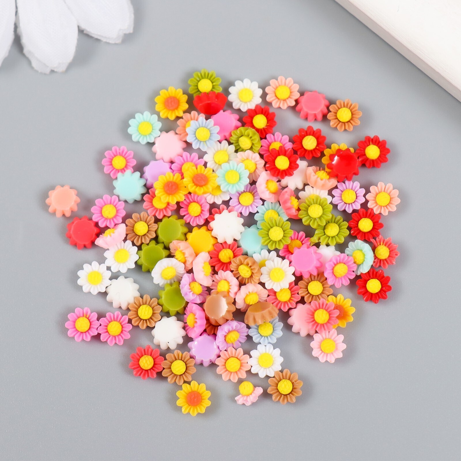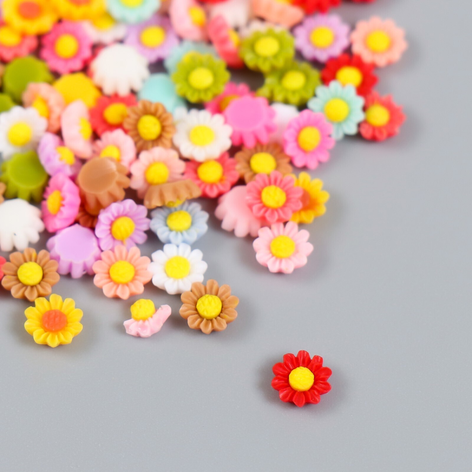 Декор для творчества пластик "Герберы цветные" набор 100 шт МИКС 0,6х0,6 см