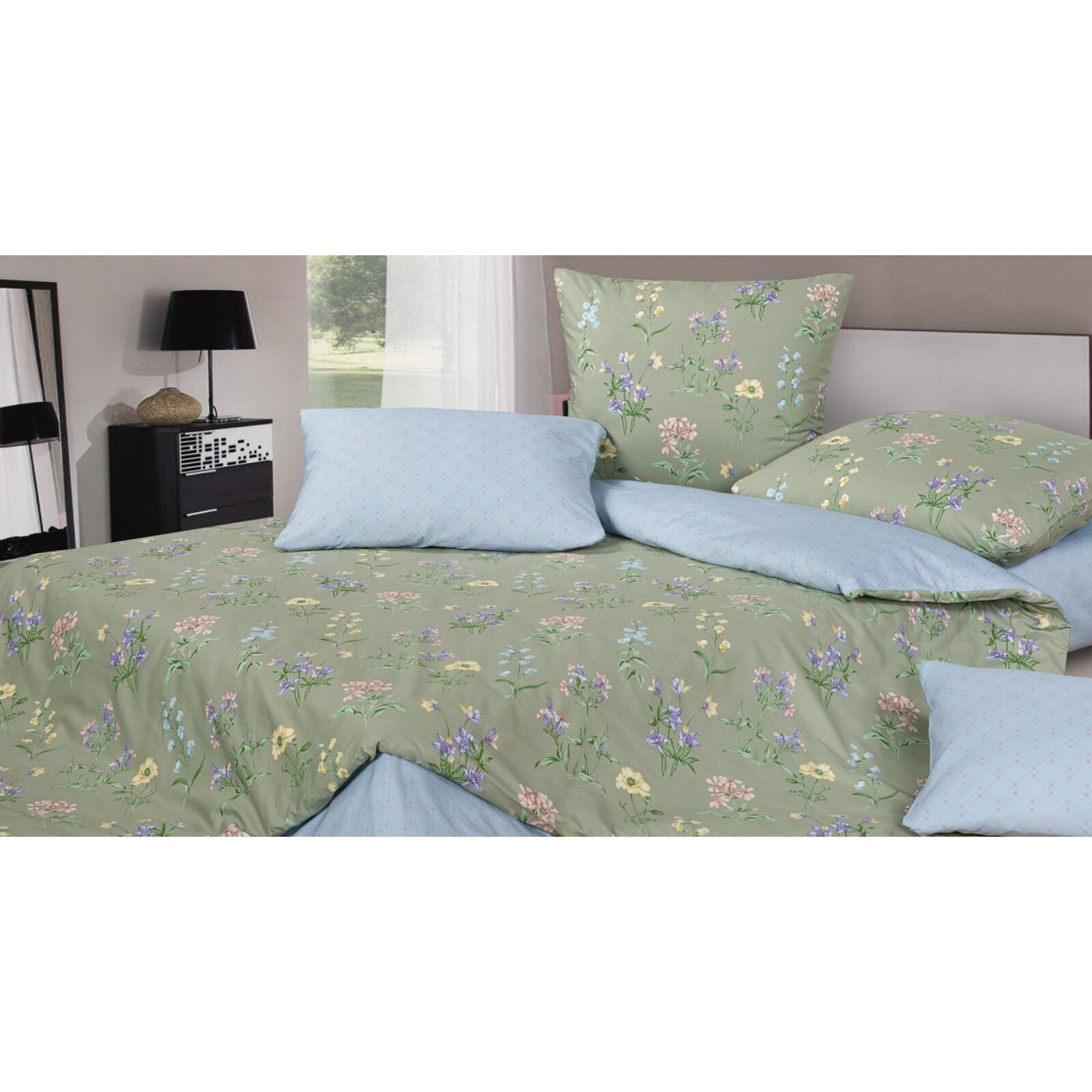 Двухсторонний пододеяльник дает возможность использовать разные цветовые комбинации набивных рисунков, а вшивная молния значительно облегчит заправку одеяла.