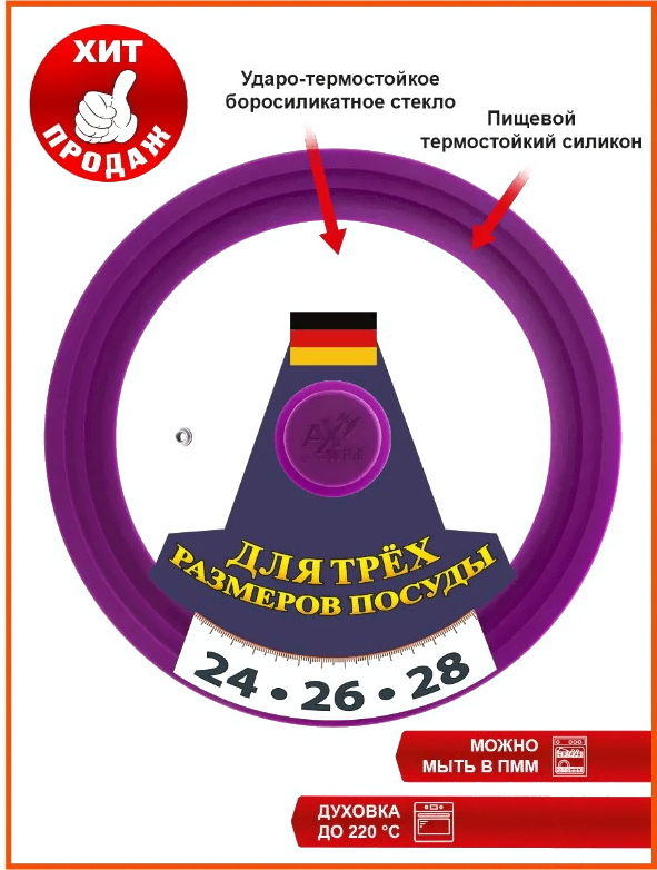 Крышка стеклянная AxWild 3111288 (фиолетовый)