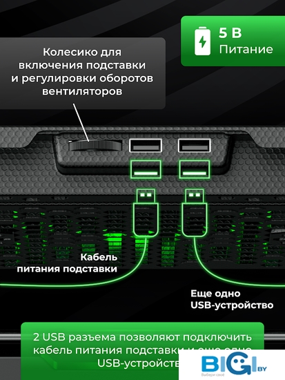 • Особенности - регулировка скорости вращения вентиляторов с помощью специального колесика- мощность воздушного потока 68 CFM