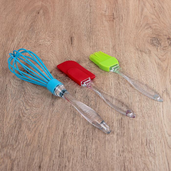 Набор кондитерский (3пр.): лопатка 19см, кисть 17,5см, венчик 25см Доляна Лёд 811885