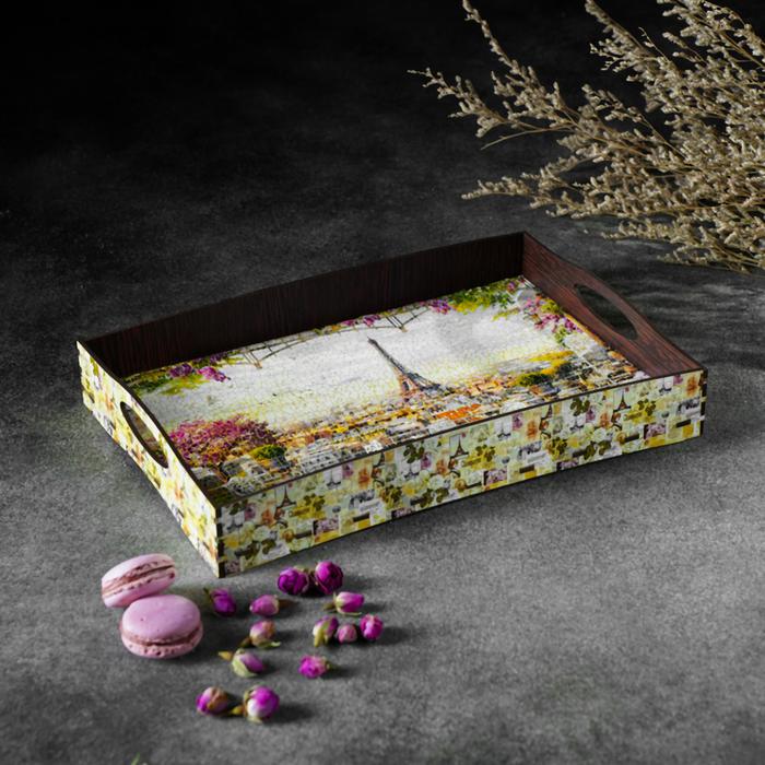 Поднос прямоугольный 30,4x20,4см "Франция", деревянный, с ручками Дарим Красиво 3564782