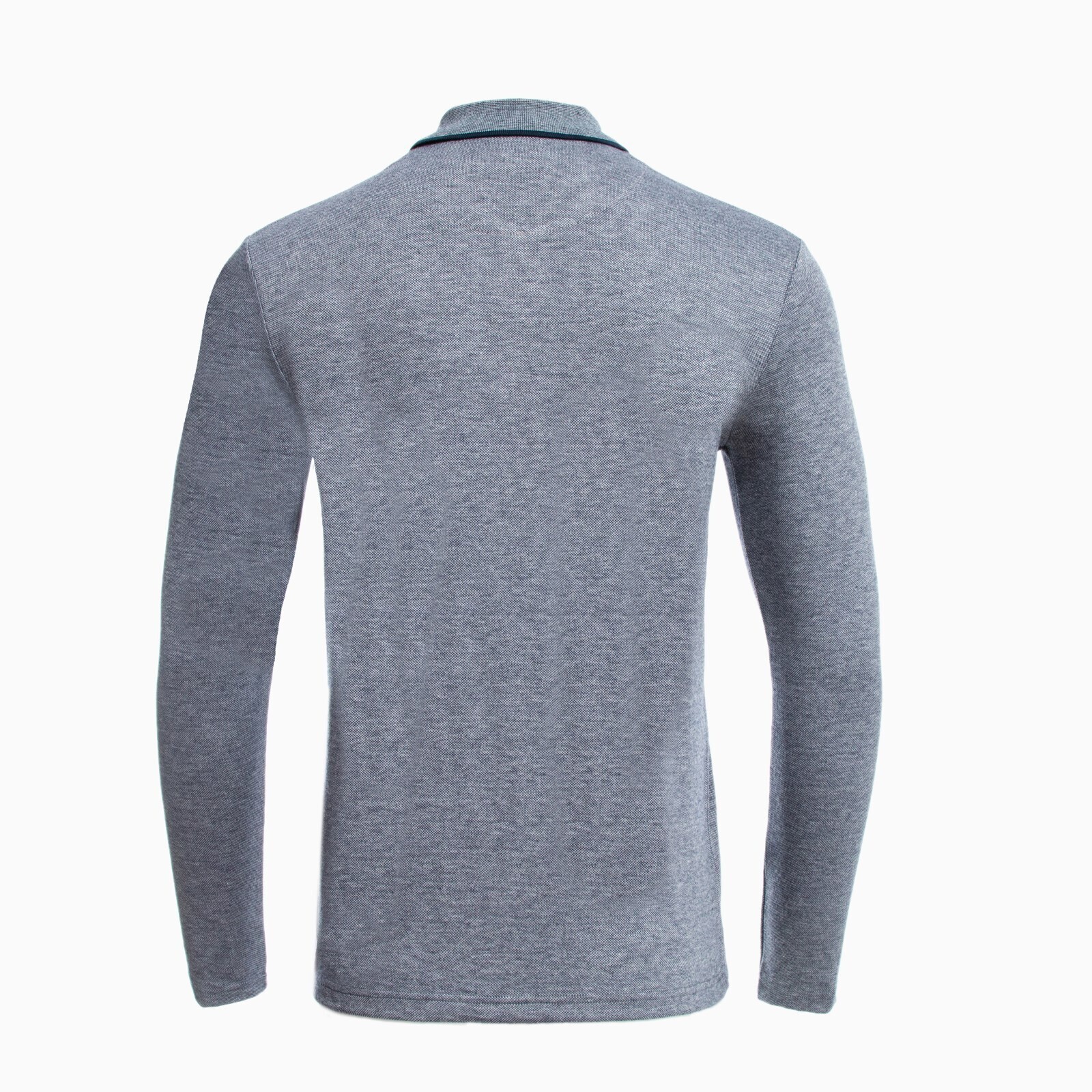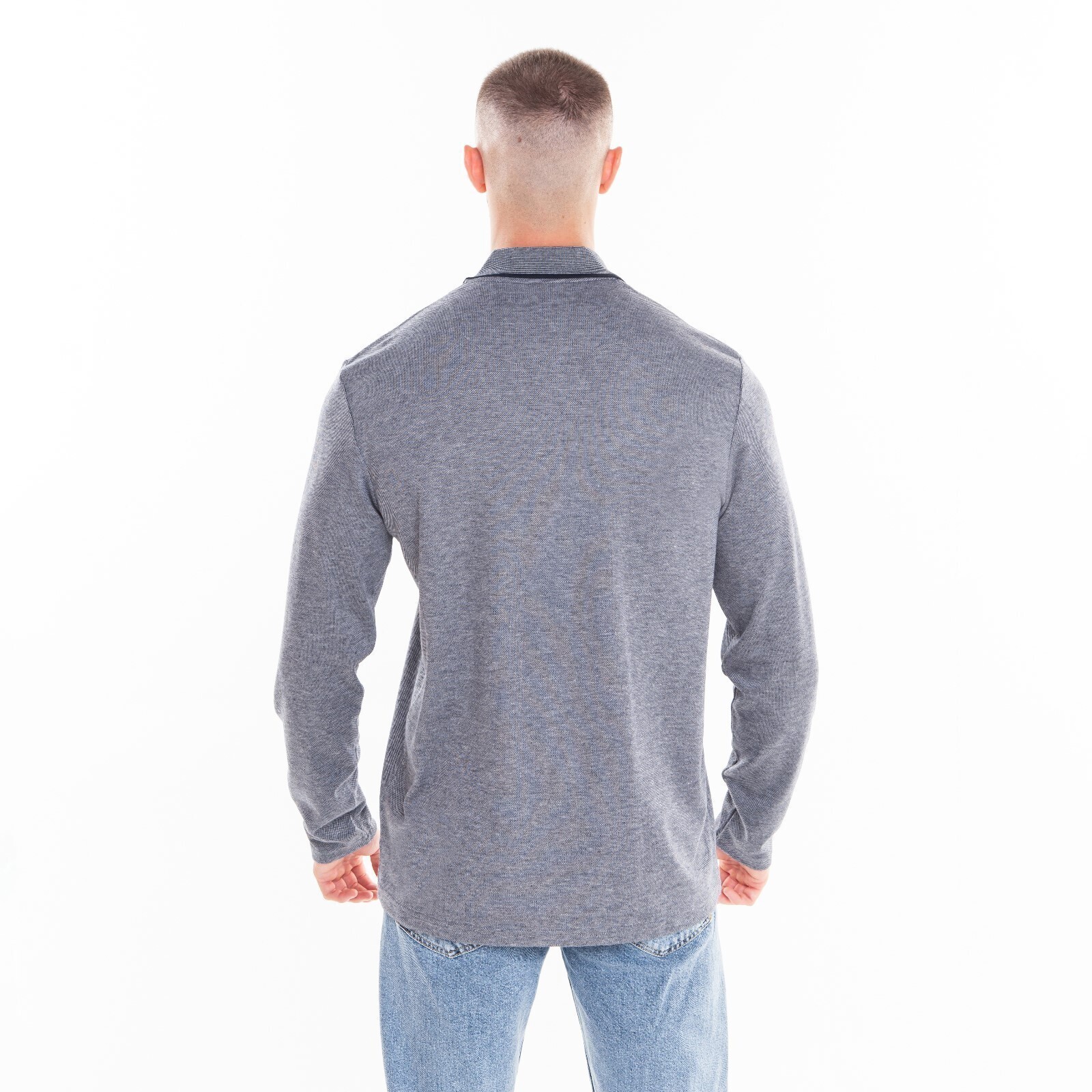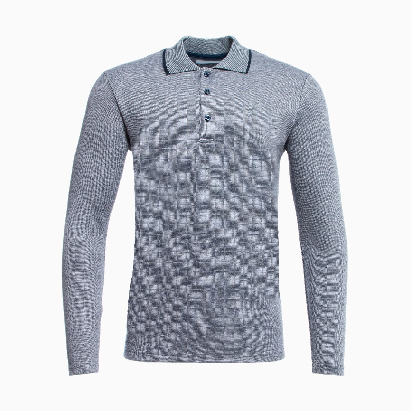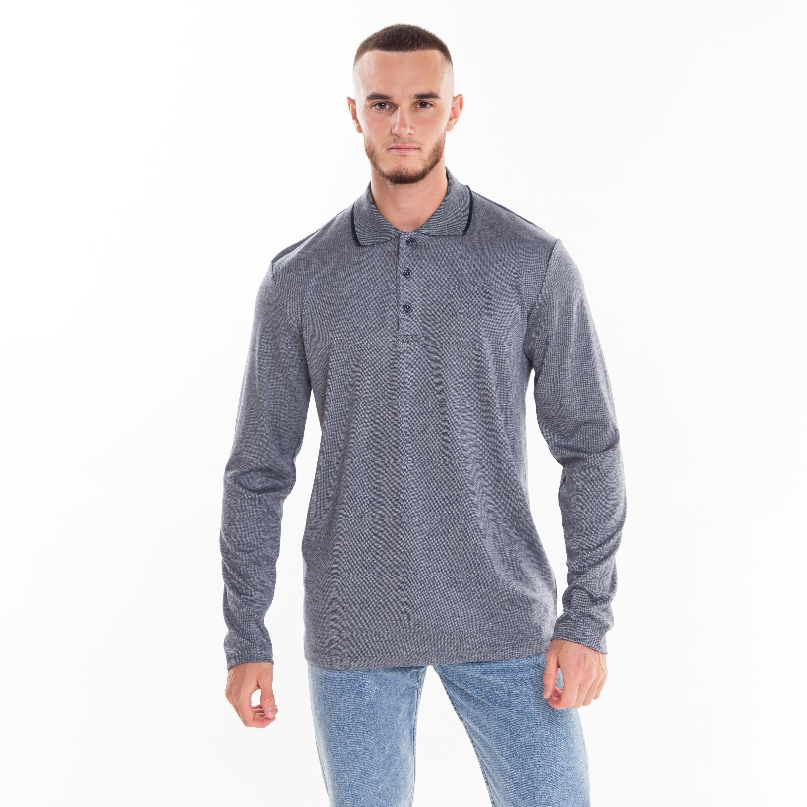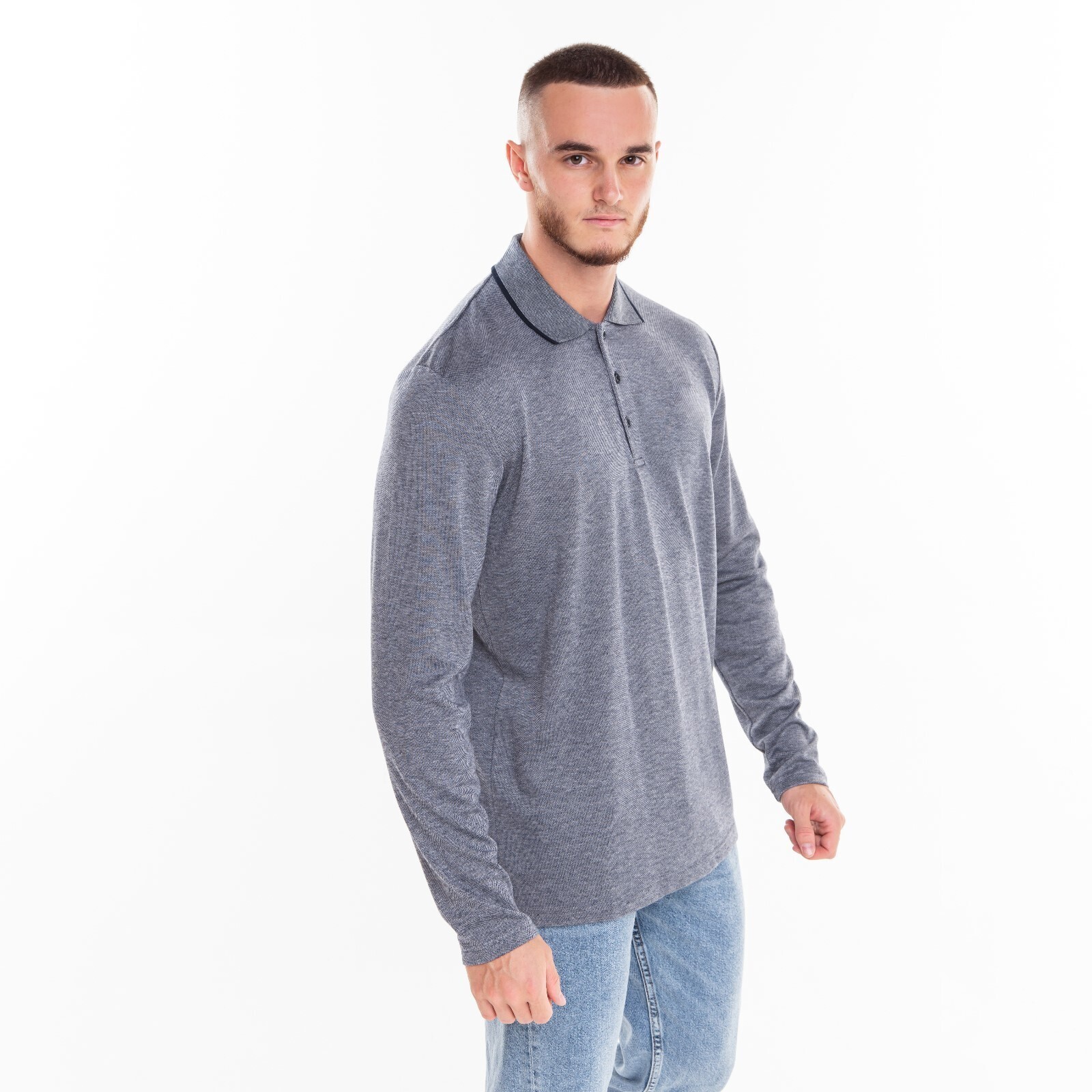 Поло мужское с длинным рукавом, цвет серый/синий, размер L