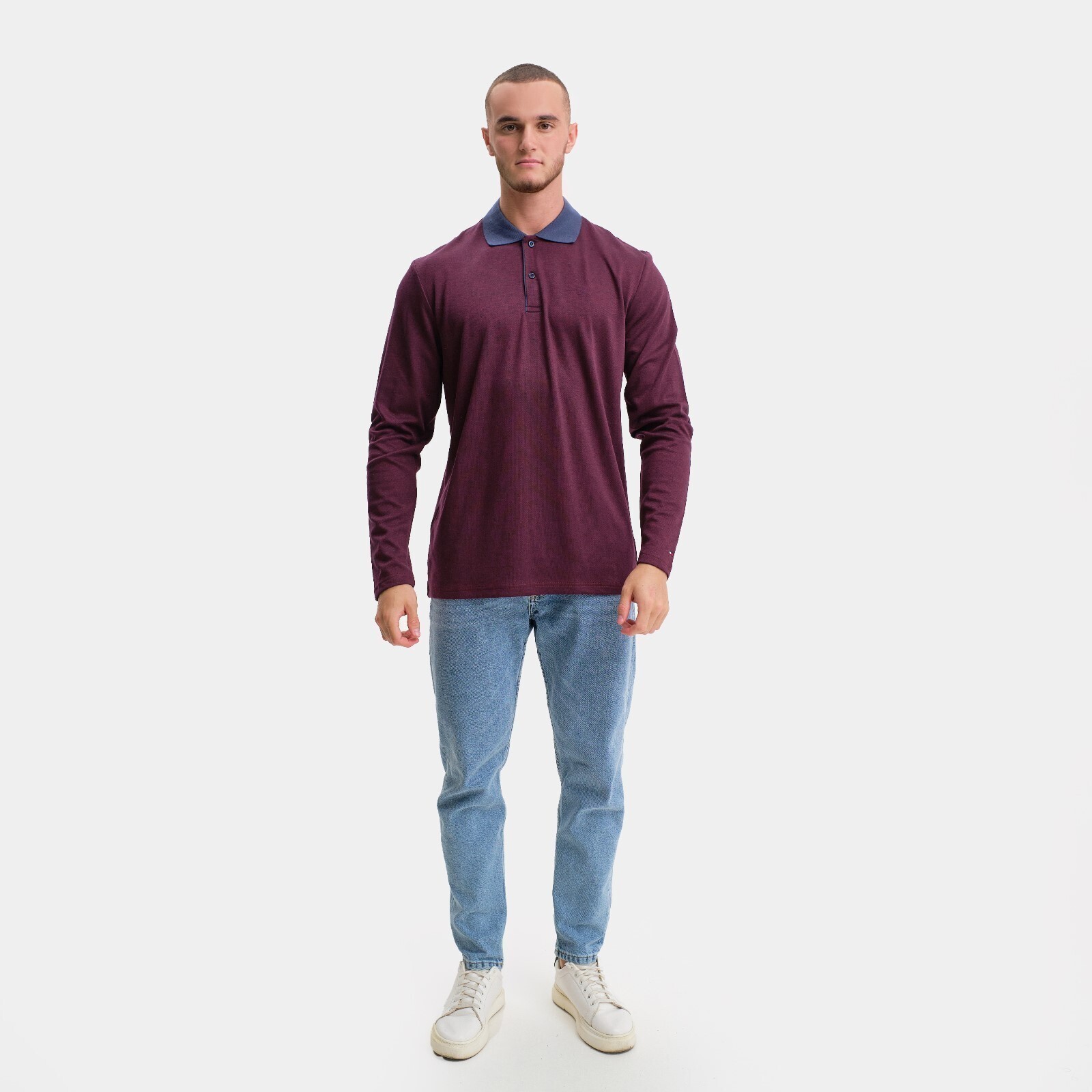 Поло мужское с длинным рукавом, цвет бордовый, размер 48 (L)