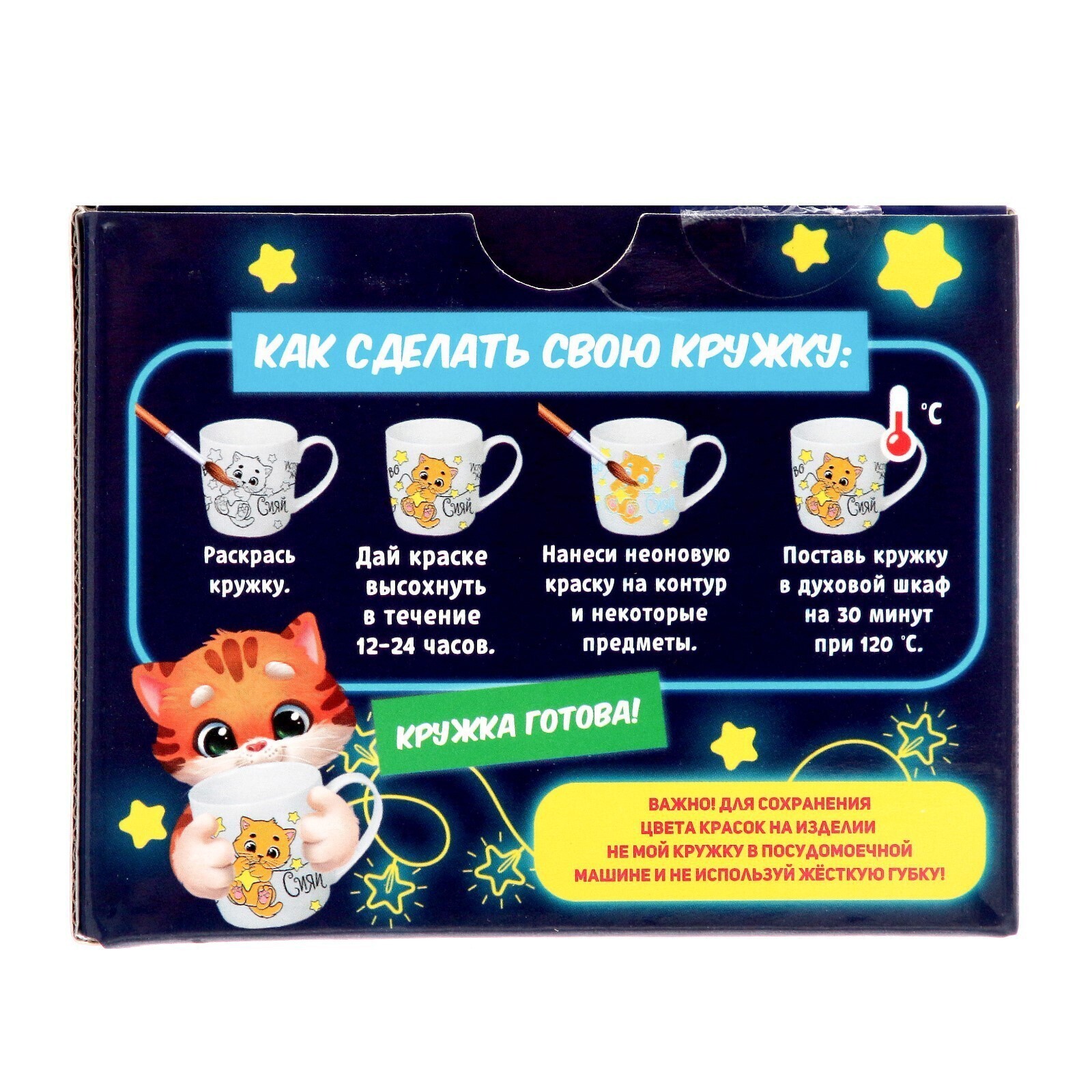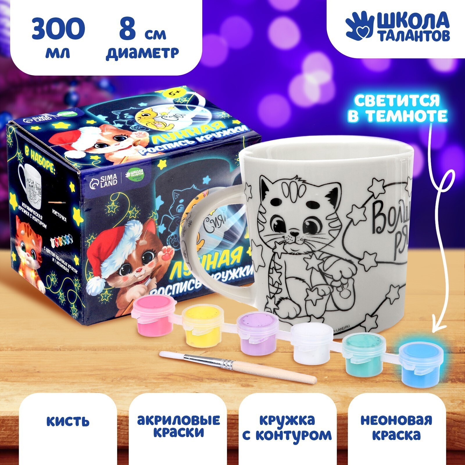 Собирайте своих маленьких творцов и раскрашивайте кружку все вместе. После того, как ваша картинка превратится в цветную, не забудьте добавить немного волшебства: светящуюся в темноте краску. Праздничная кружка готова!