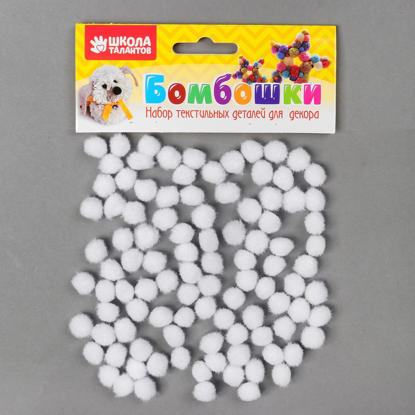Набор текстильных деталей для декора «Бомбошки» 100 шт. набор, размер 1 шт: 1 см, цвет белый