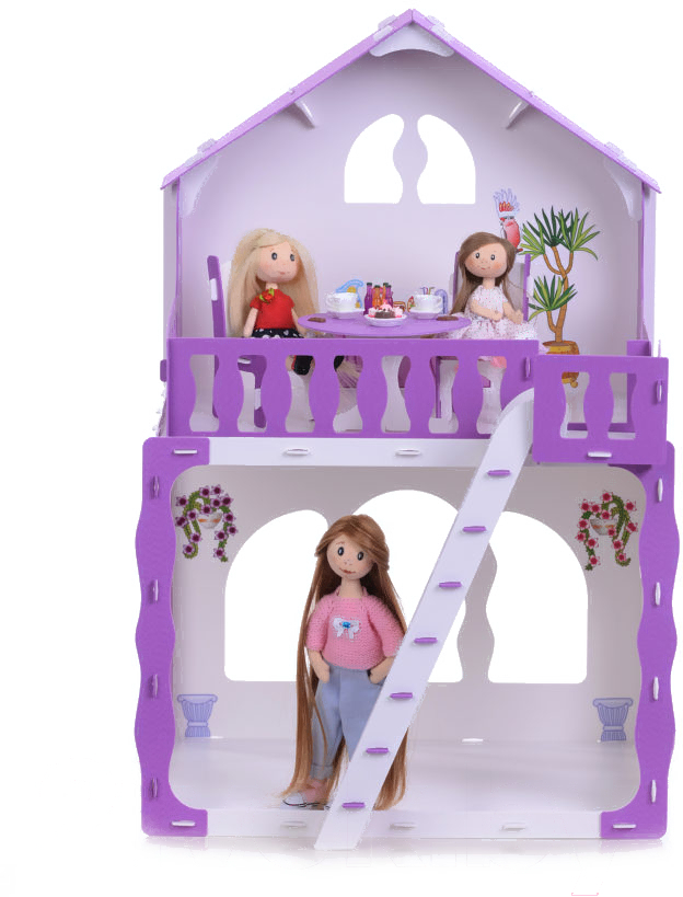 Кукольный домик Krasatoys Дом Марина с мебелью / 000267 (белый/сиреневый)