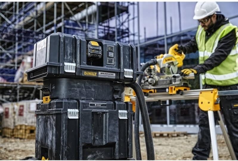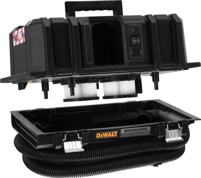 Безщітковий двигун потужністю 2000 Вт забезпечує підвищену продуктивність та захист від перевантажень. Бездротовий пилосос активується за допомогою віддаленого брелока, тому немає потреби під'єднувати до мережі, що спрощує використання та економить час. Звукова сигналізація попереджає користувача про зниження продуктивності. Ідеально підходить для використання на будмайданчиках.