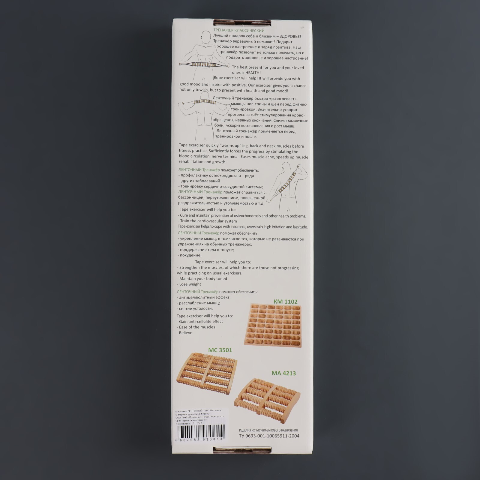 Массажёр-лента деревянный, роликовый, 2,5 х 6,8 х 122,5 см, 10 звеньев