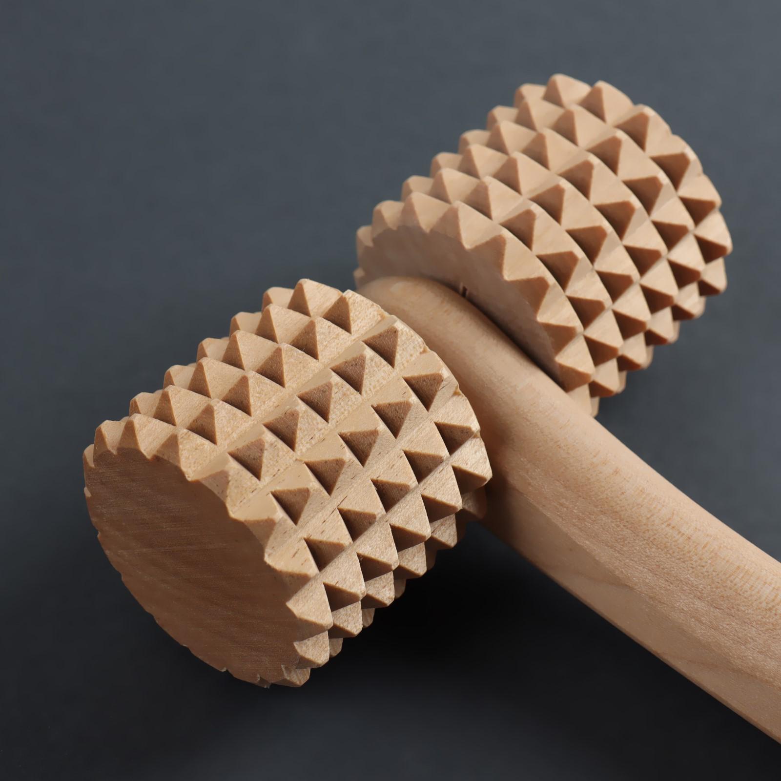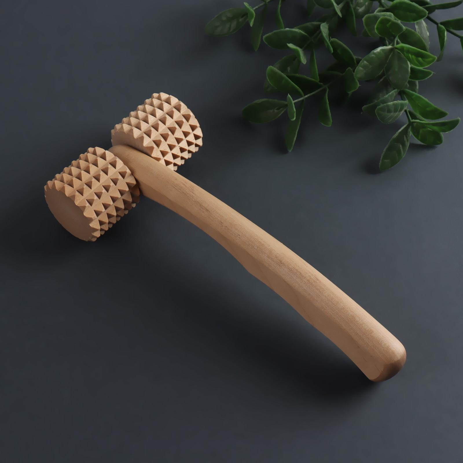 Массажёр «Каток», 20 × 9 × 4 см, деревянный, зубчатый