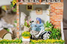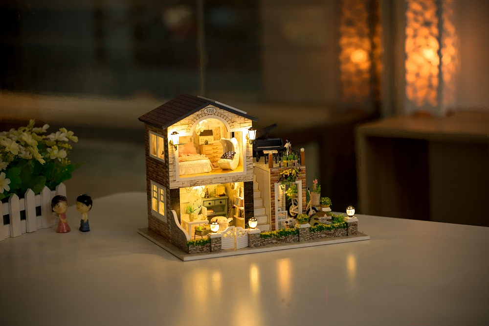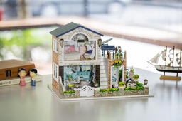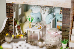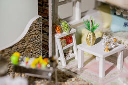 • Комплектация кукольного домика/румбокса кровать, обеденный стол (2 шт.), стул, стеллаж (2 шт.), люстра (2 шт.), декоративный цветок (10 шт.), пуфик, шторы, рояль, кресло-качалка, будка, подзорная труба, подушка (3 шт.), фонарь (5 шт.), животное (собака), еда/напитки (7 шт.), велосипед, скатерть