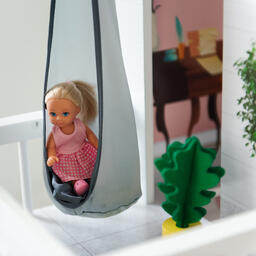 • В комплекте кровать, обеденный стол, стул (3 шт.), ванна, торшер, плита, диван, журнальный столик, декоративный цветок, кресло-качалка (подвесное), трюмо, лестница (2 шт.)