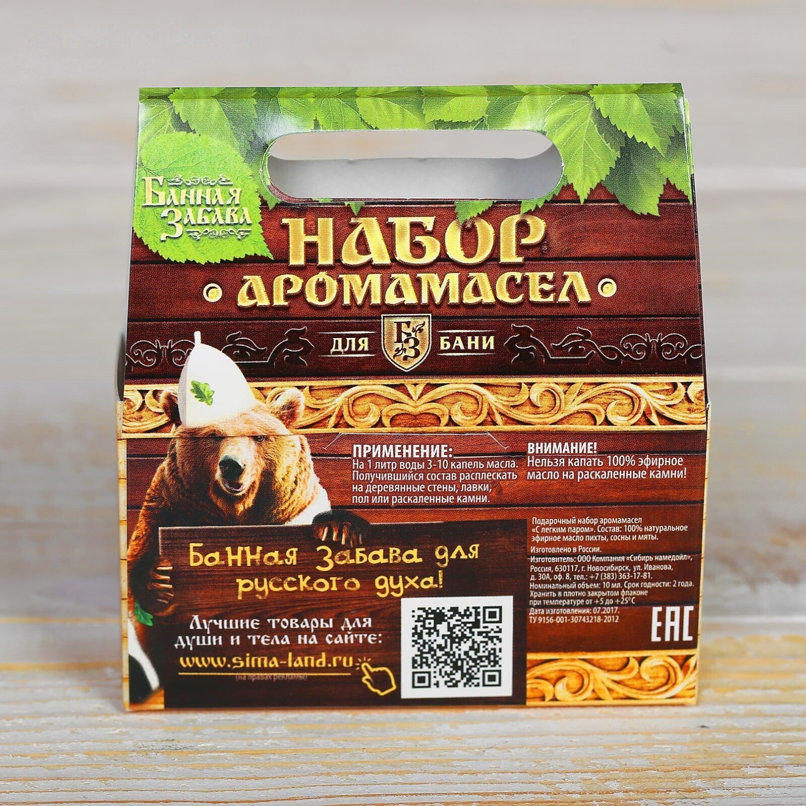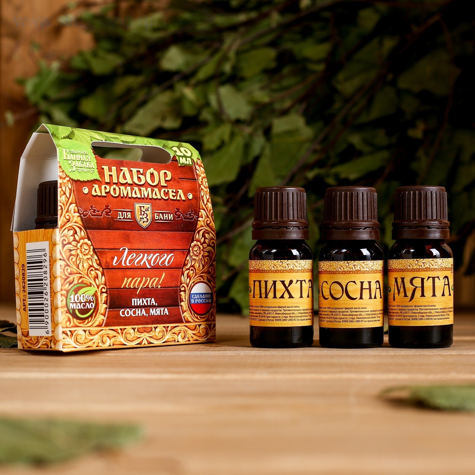 Набор аромамасел "С лёгким паром" (пихта, сосна, мята), по 10 мл