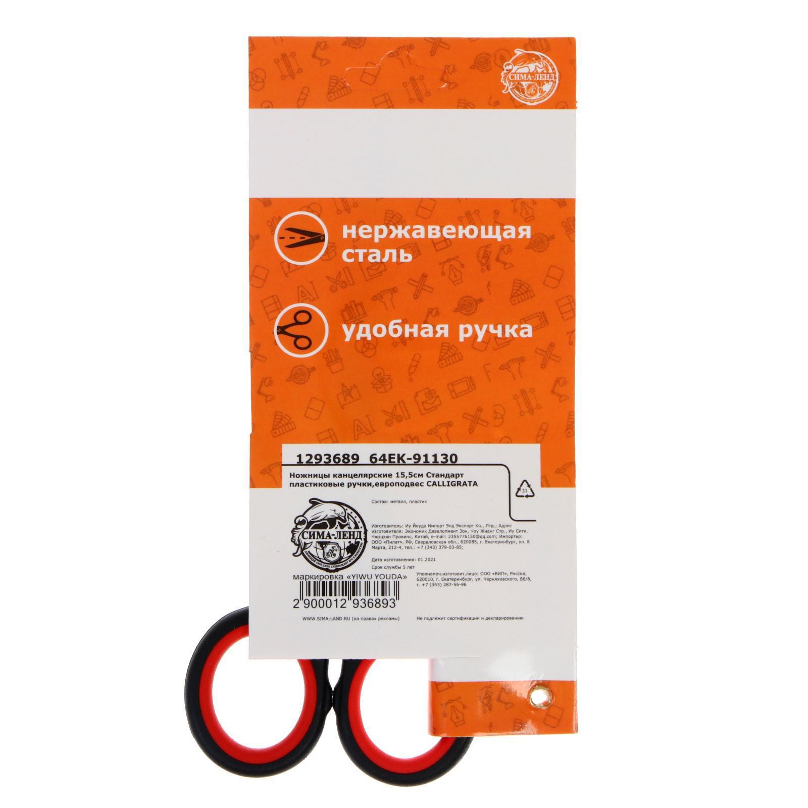 Ножницы канцелярские, 15,5 см, "Стандарт", пластиковые ручки, европодвес