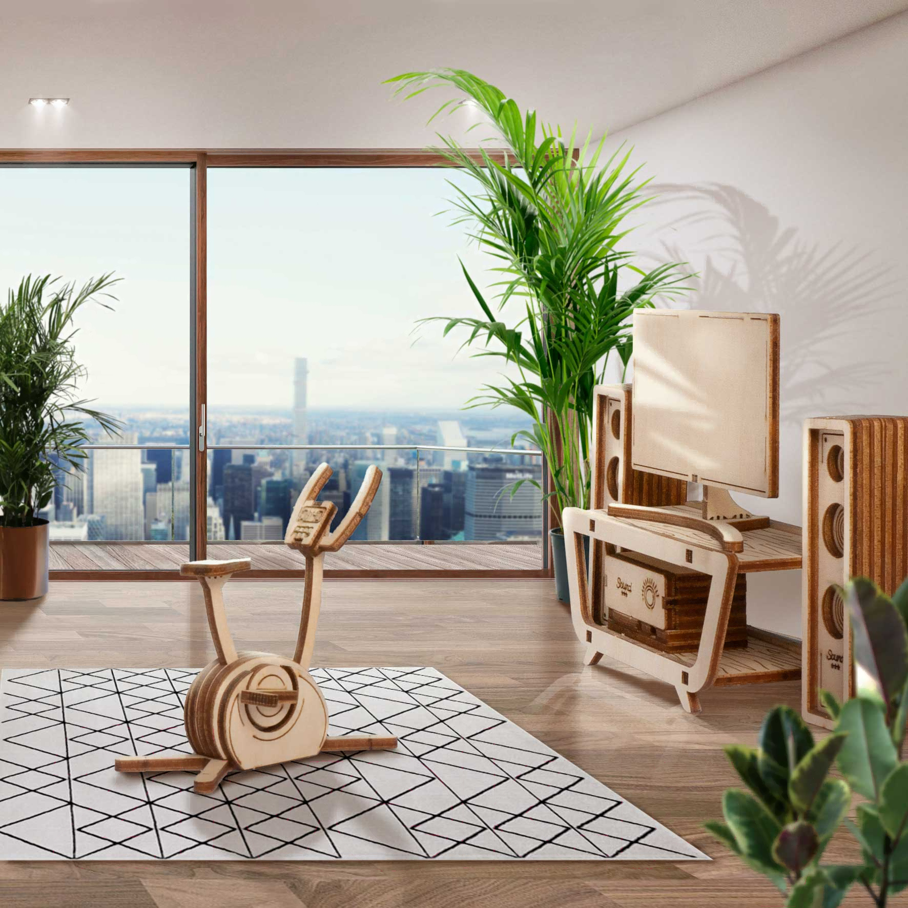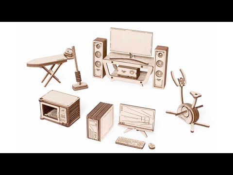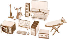 Вид аксессуарателевизор, музыкальный центр, компьютер (монитор, клавиатура, системный блок, мышка), гладильная доска, утюг, пылесос, стол, микроволновая печь, колонка, тренажер