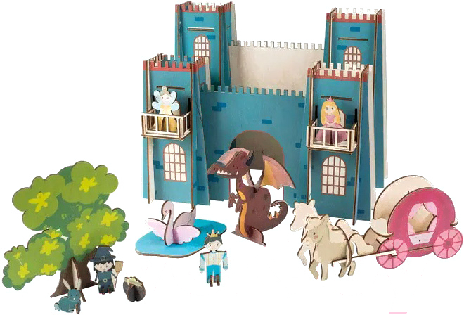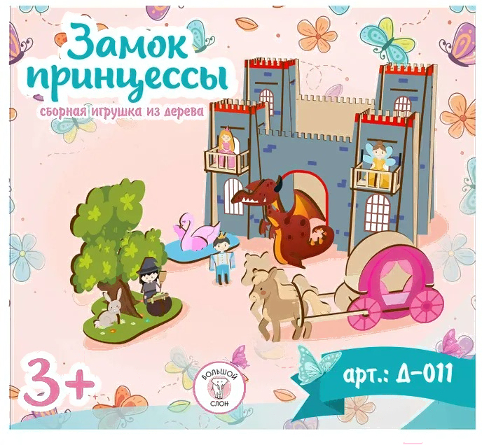 - Комплектация кукольного домика/румбокса карета, животное (кролик, лошадки, дракон), декорации (пруд с лебедем), фигурка персонажа (феи 2 шт, принц, ведьма)