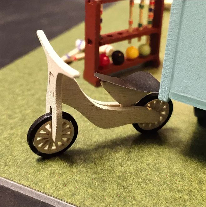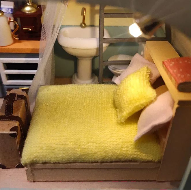 • Комплектация кукольного домика/румбокса кровать, диван, умывальник, солнечный зонт, декоративный цветок (5 шт.), кухня, полка, раковина, посуда, книга, лестница, стол (2 шт.), подушка (5 шт.), чемодан, еда/напитки, чайник, мотоцикл
