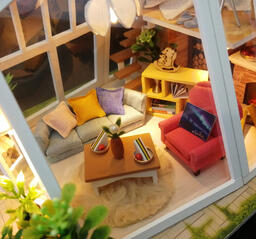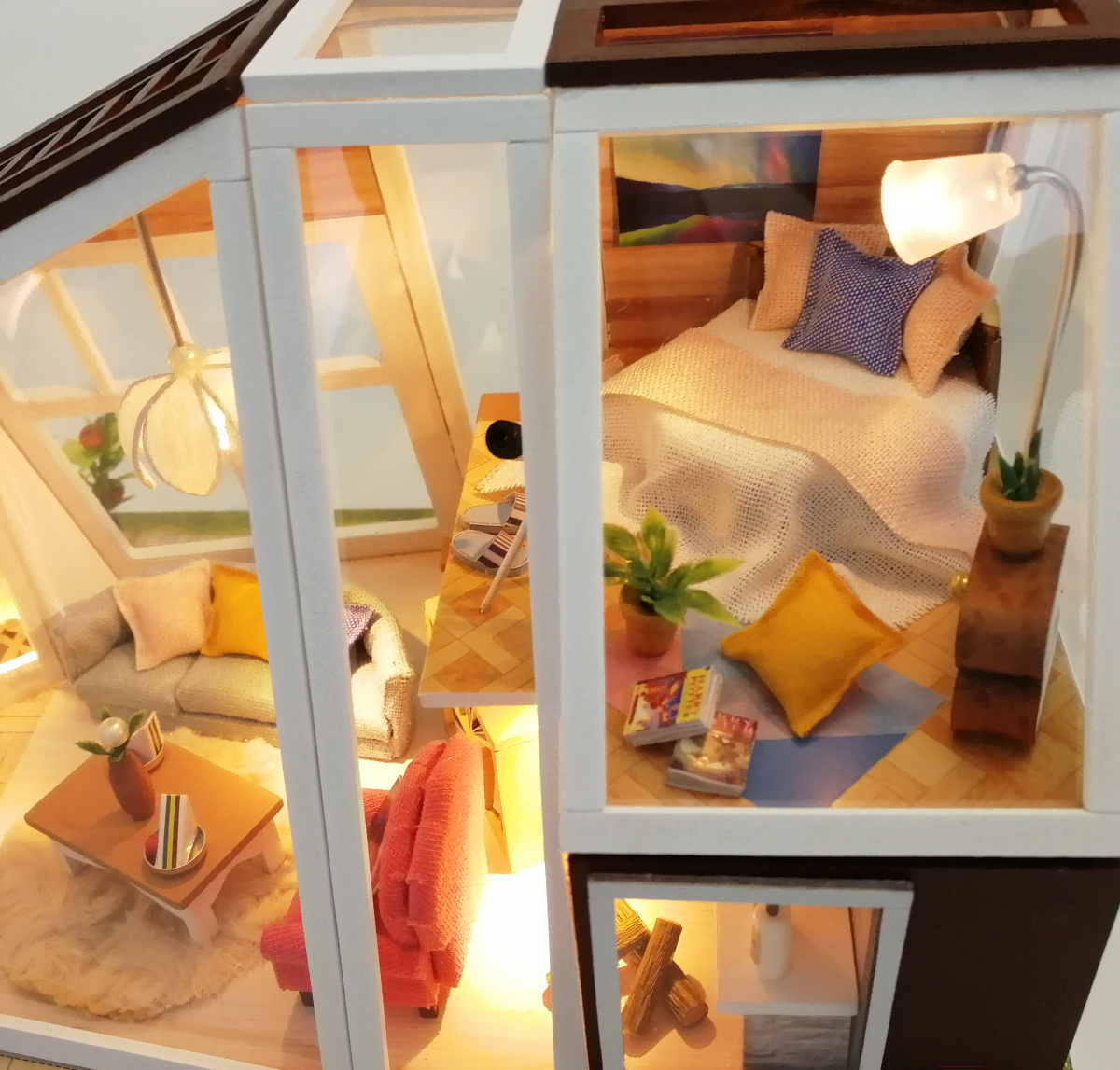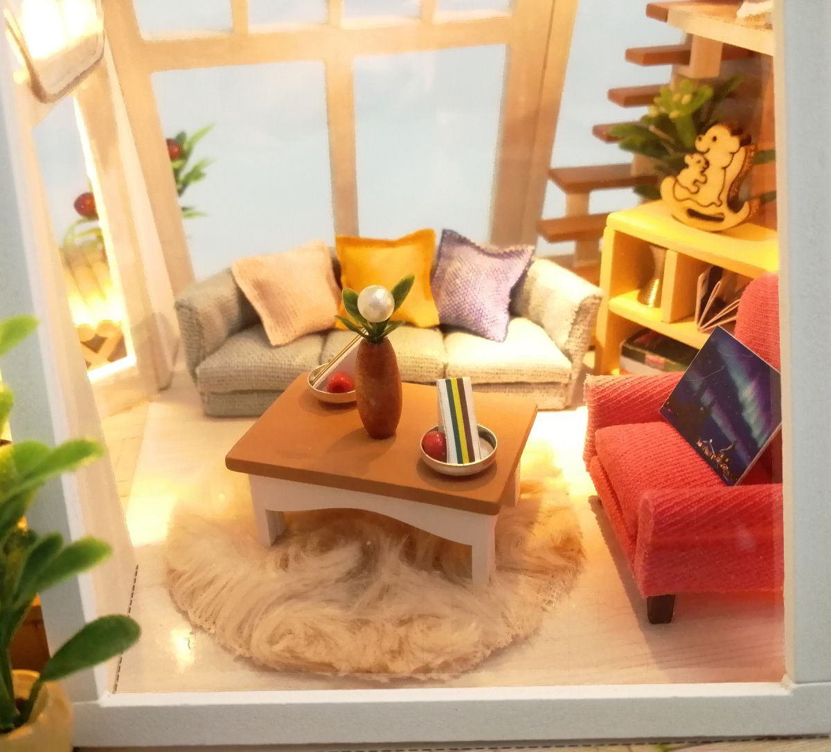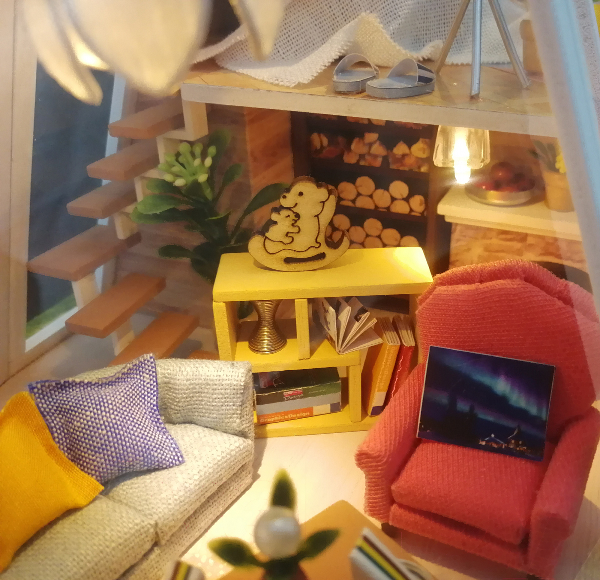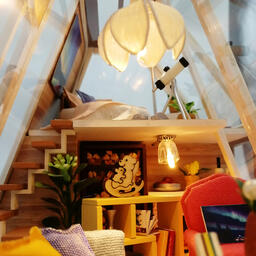 • Комплектация кукольного домика/румбокса кровать, кресло, стеллаж, диван, люстра, ковер (2 шт), журнальный столик, камин, декоративный цветок (10 шт), светильник (4 шт), картина (2 шт), посуда (тарелка - 2 шт), книга (8 шт), скамья, комод, телескоп, стойка, дрова (6 шт), лестница, подушка (7 шт), статуэтка, еда/напитки (тортик - 2 шт, яблоки - 6 шт), обувь (тапочки), одеяло, бутылочка (2 шт)