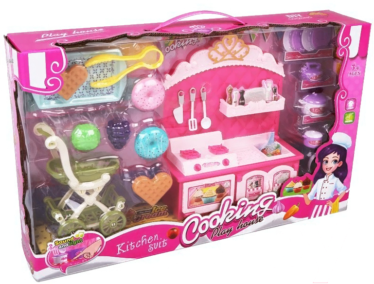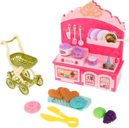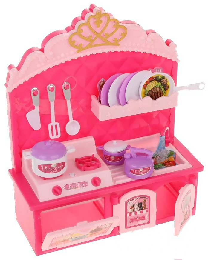 - Вид аксессуара кухня (модуль с плитой и раковиной), посуда (13 шт.), еда/напитки (6 шт.), тележка