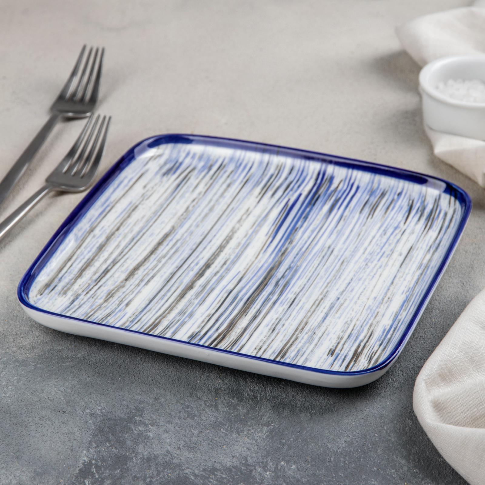 Яркая серия посуды «Бриз» обязательно впишется в интерьер вашей кухни! Классические белые изделия дополняет принт в виде тонких линий синего, голубого и серого цветов. Такое сочетание выигрышно смотрится при сервировке стола.