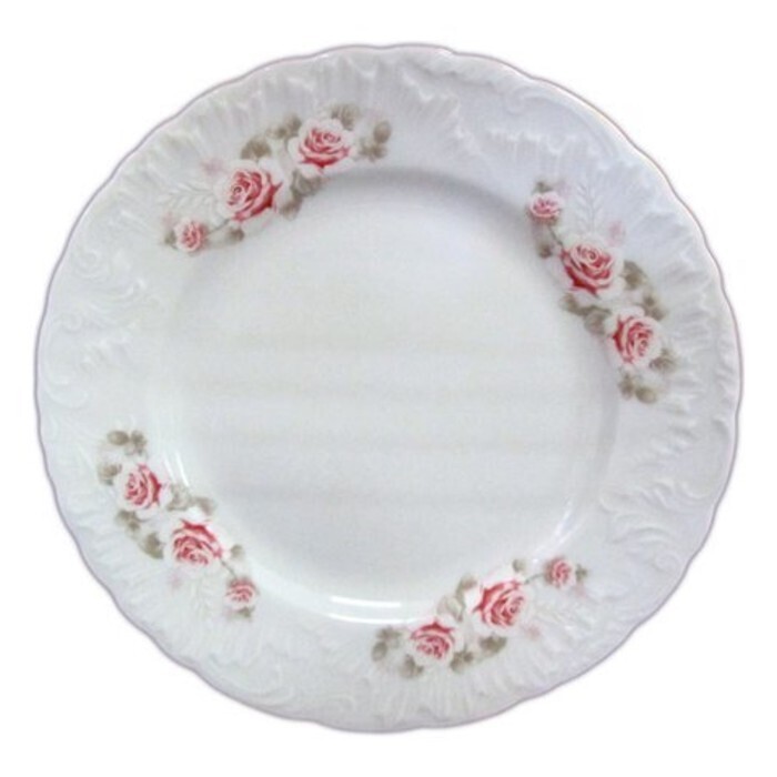 Тарелка мелкая 25 см, Rococo, декор «Бледные розы, отводка золото»