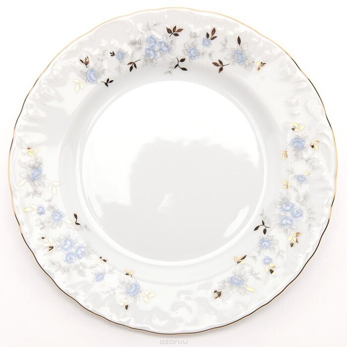 Тарелка мелкая 25 см, Rococo, декор «Голубые цветы, отводка золото»