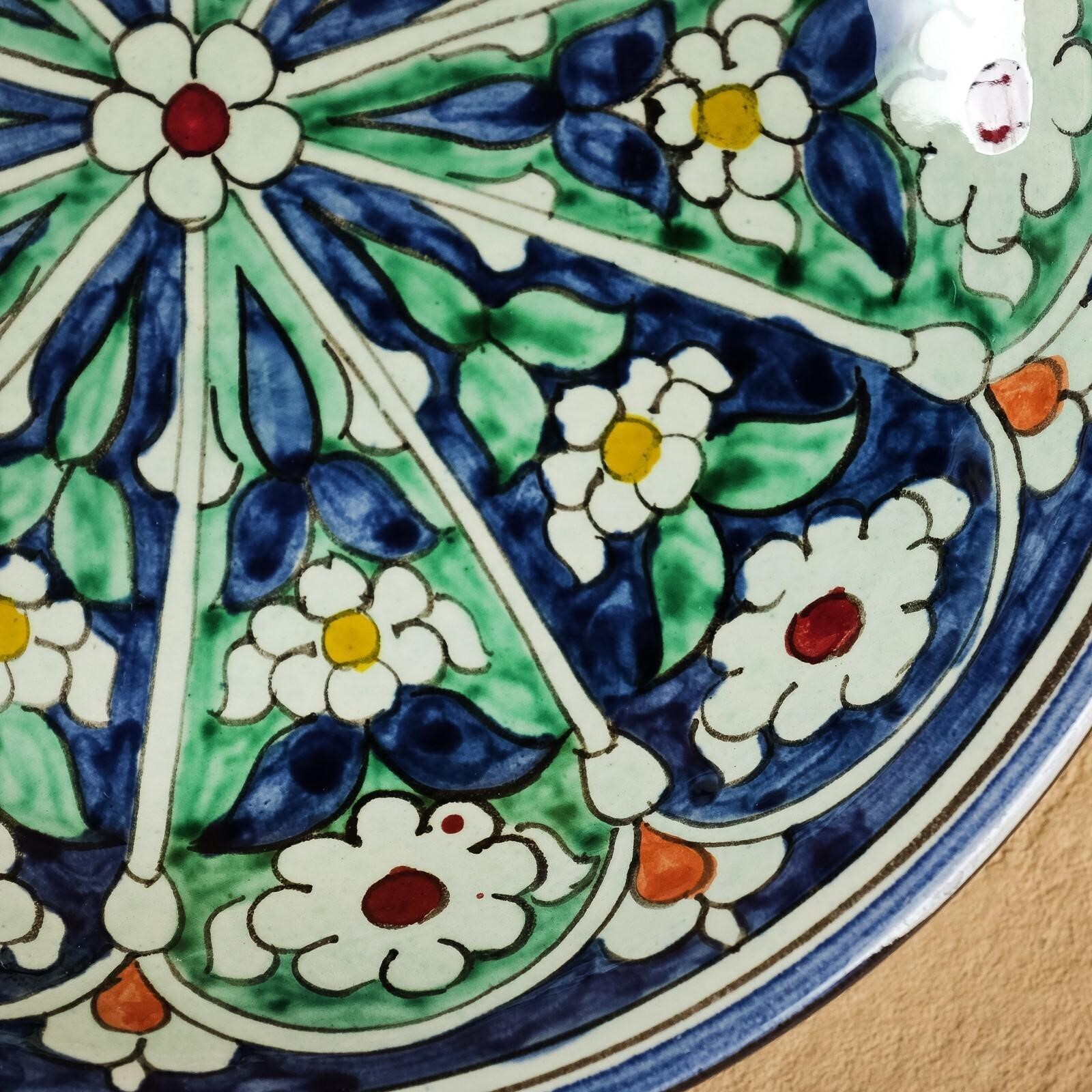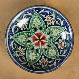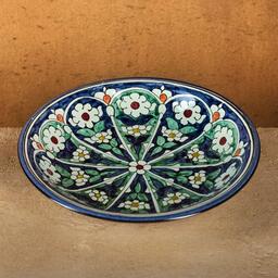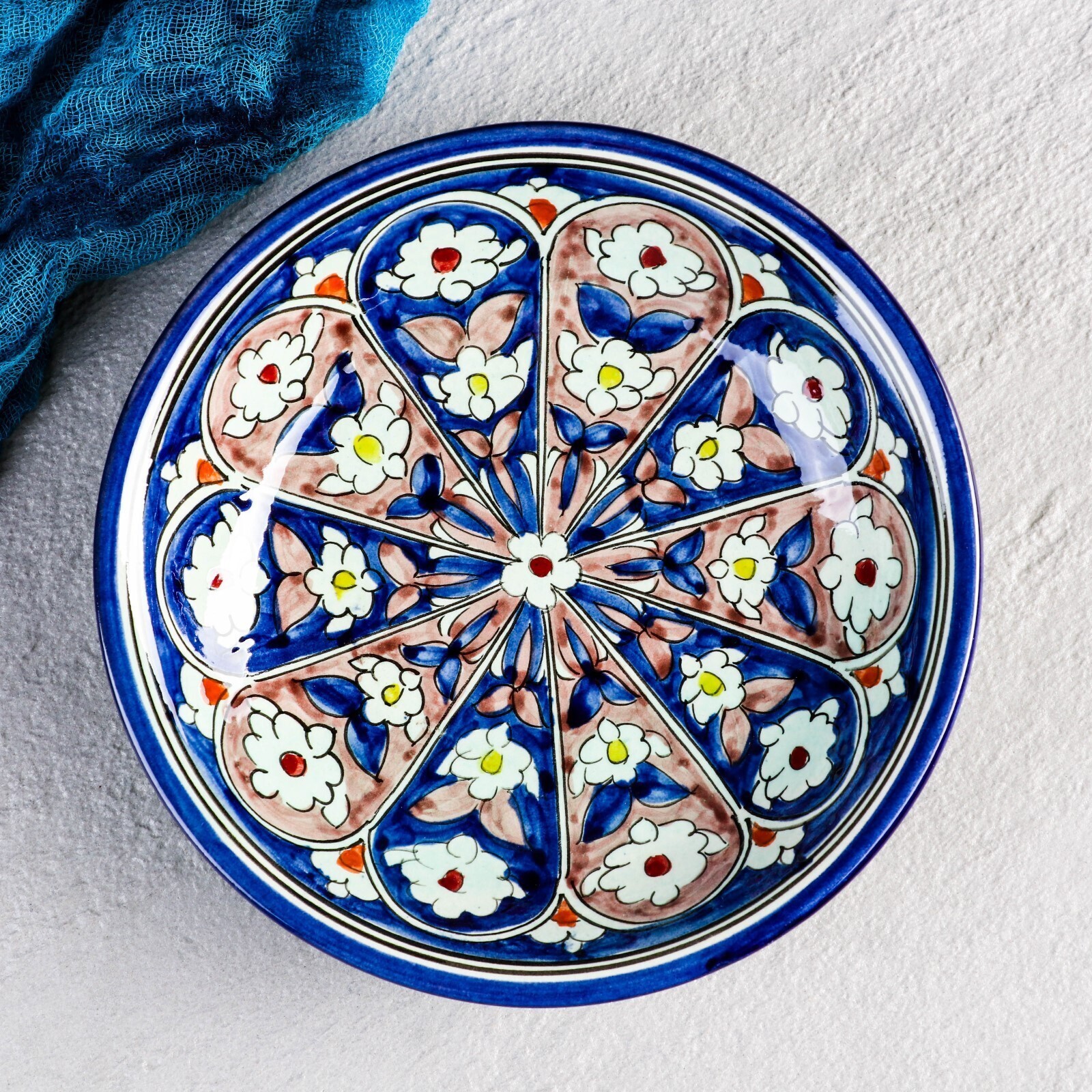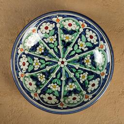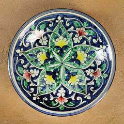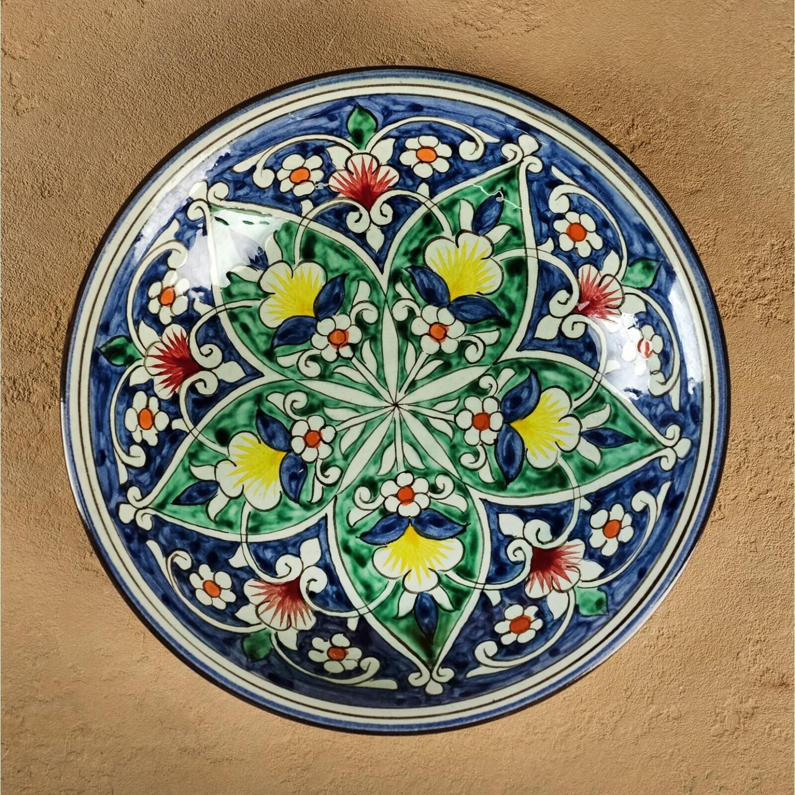 Тарелка Риштанская Керамика "Цветы", синяя, глубокая, 20 см МИКС
