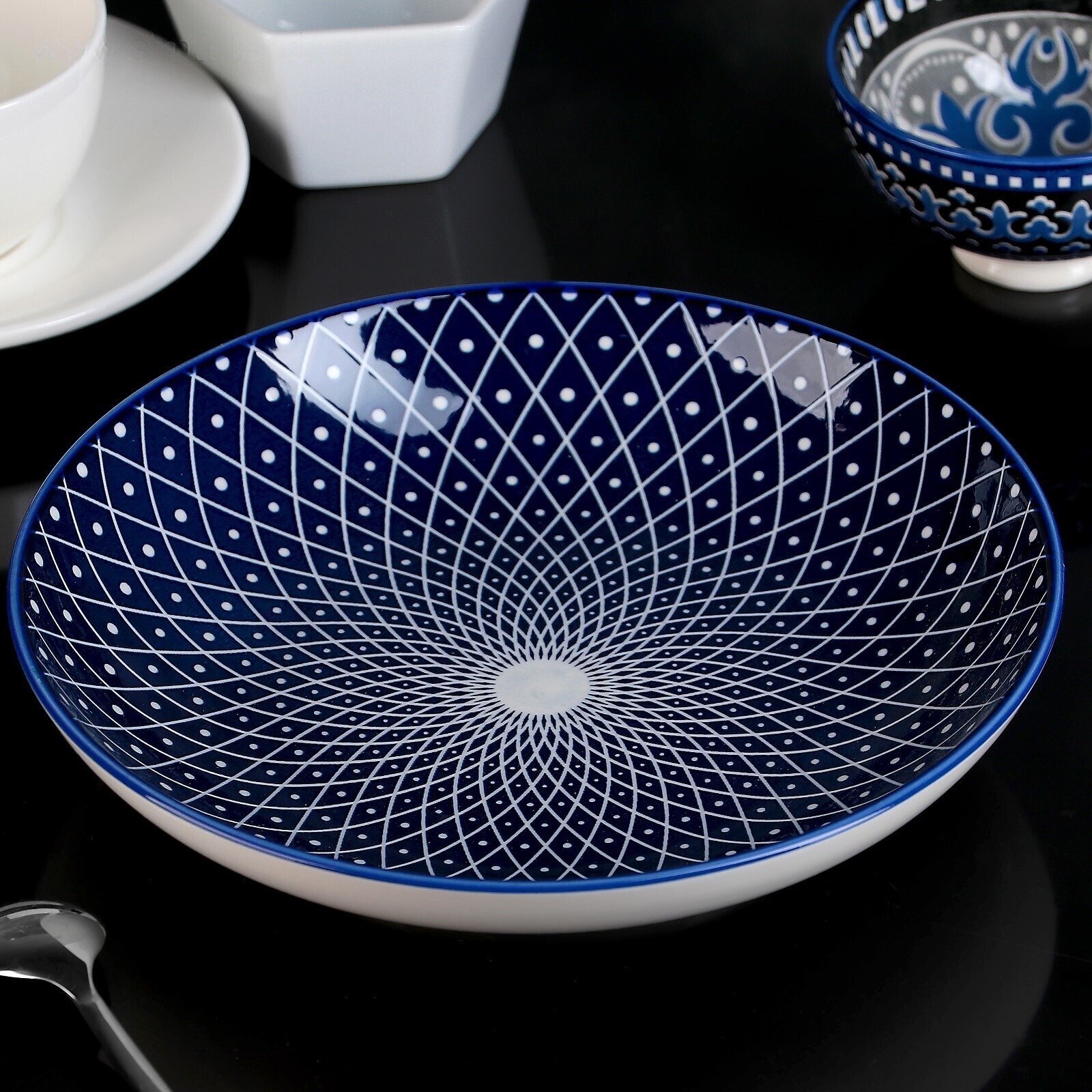 Серия посуды Доляна «Бодом» создана для идеальной сервировки вашего стола. Глубокий и насыщенный синий цвет в сочетании с белым орнаментом придают изделиям особенный вид. Посуда изготовлена из прочной керамики, устойчива к повреждениям и перепадам температур.