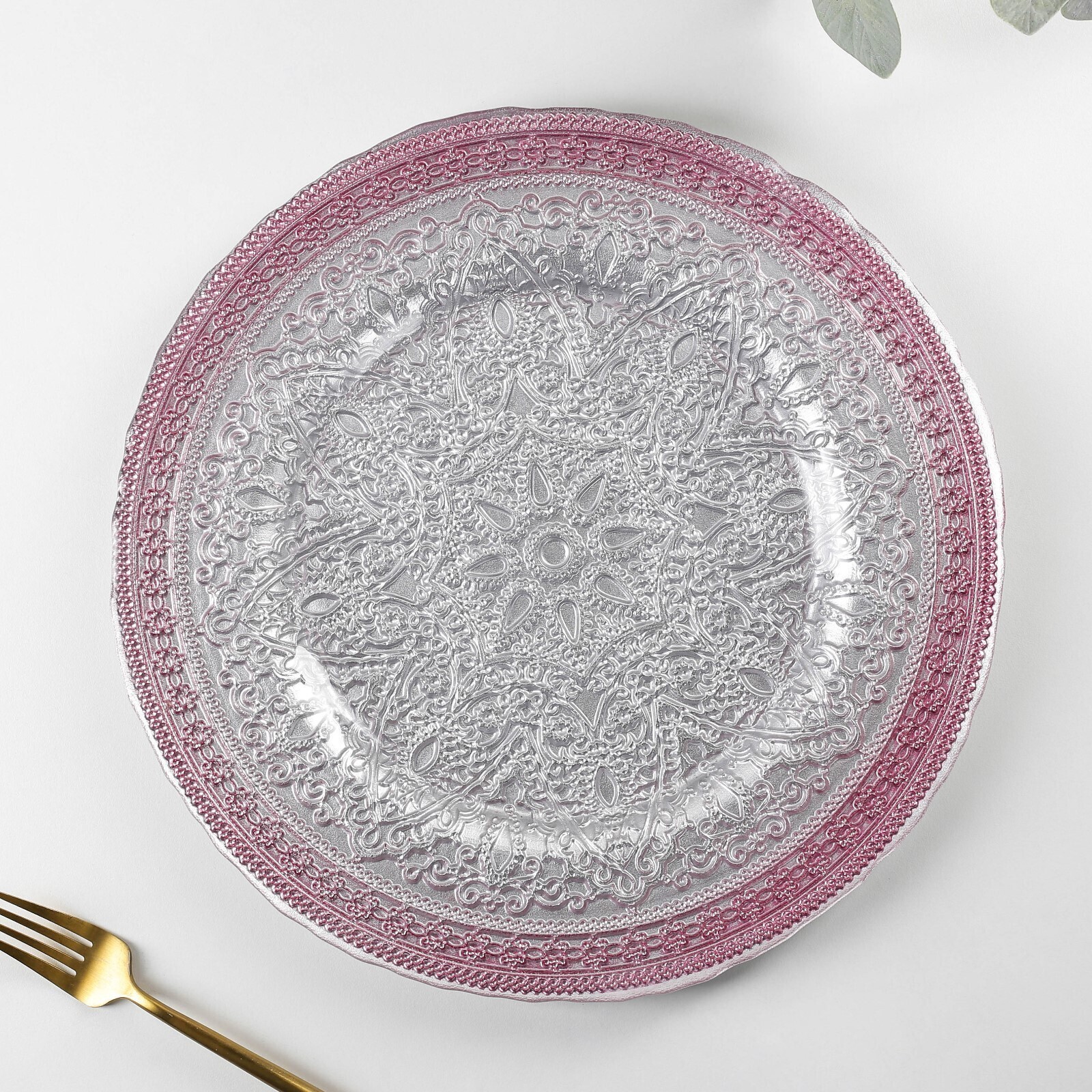 Тарелка стеклянная подстановочная Magistro «Богема», d=33 см, цвет розовый