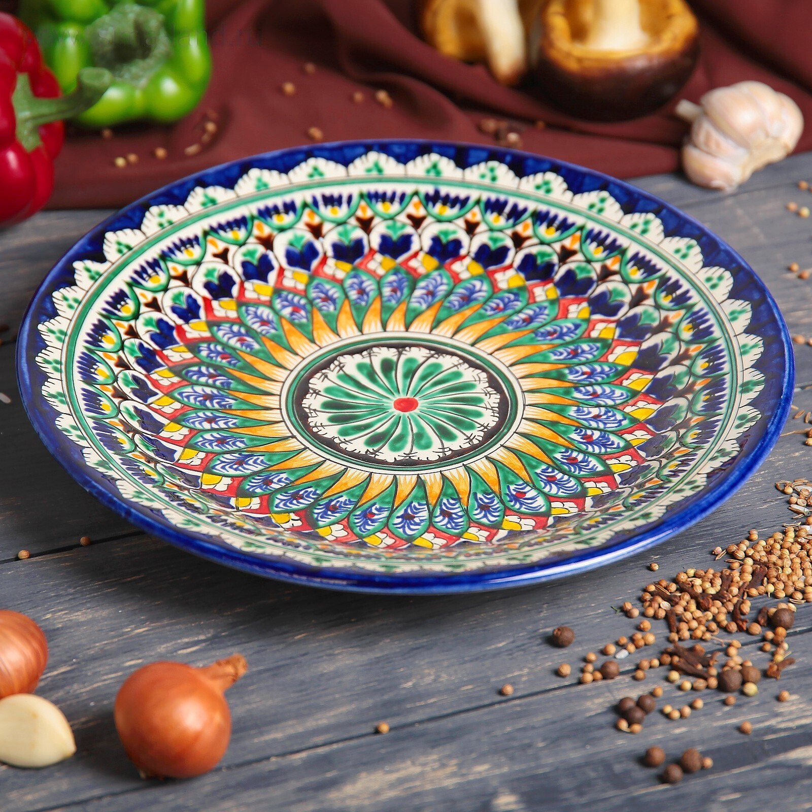 Тарелка Риштанская Керамика "Цветы", 25 см, синий