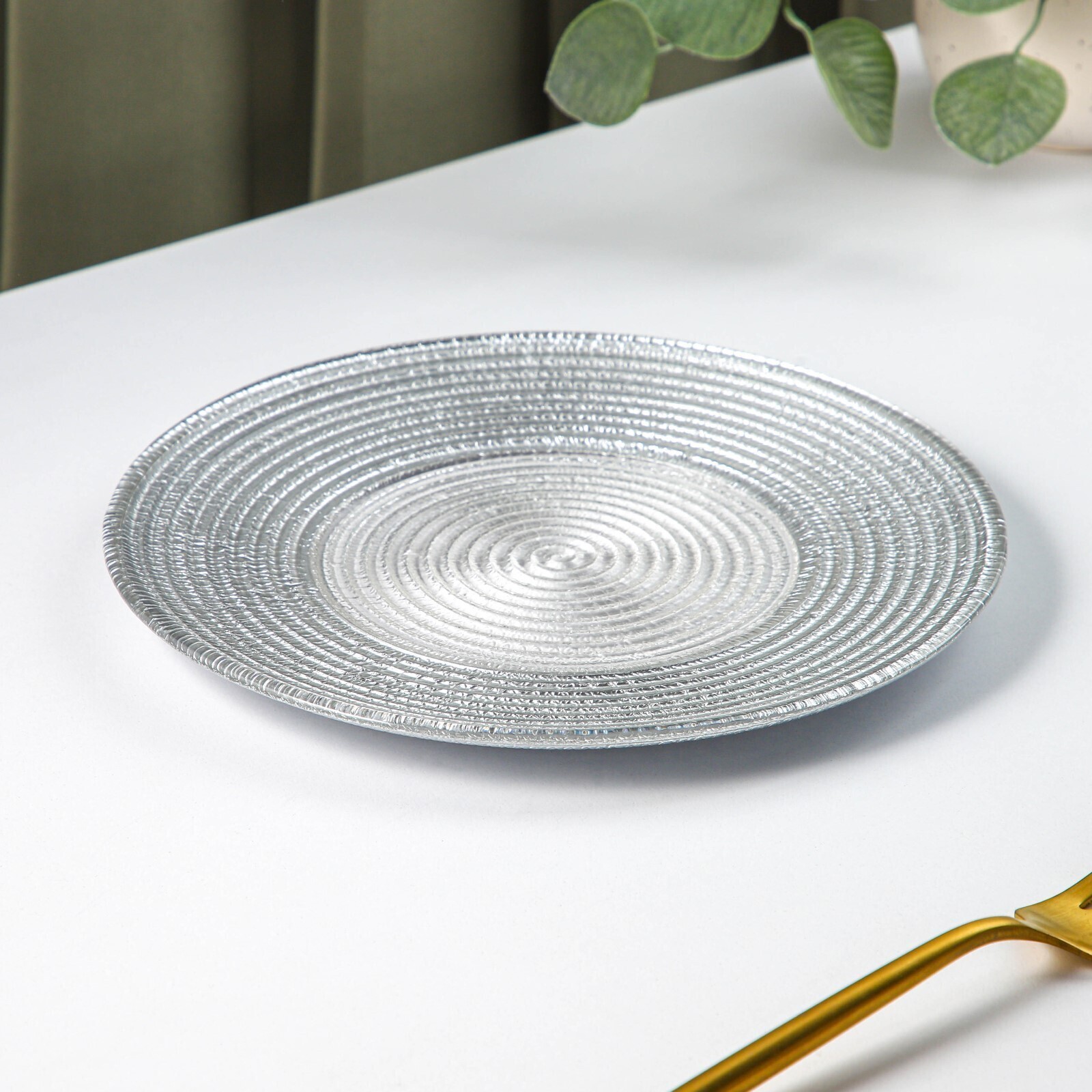 Тарелка стеклянная десертная «Севилья», d=21 см, цвет серебряный