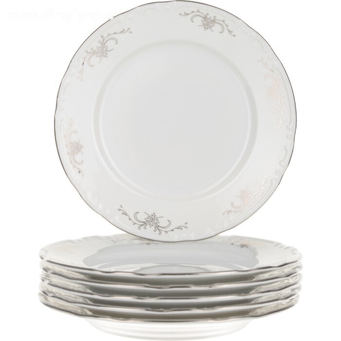 Тарелка десертная Constance, декор «Серый орнамент, отводка платина», 17 см
