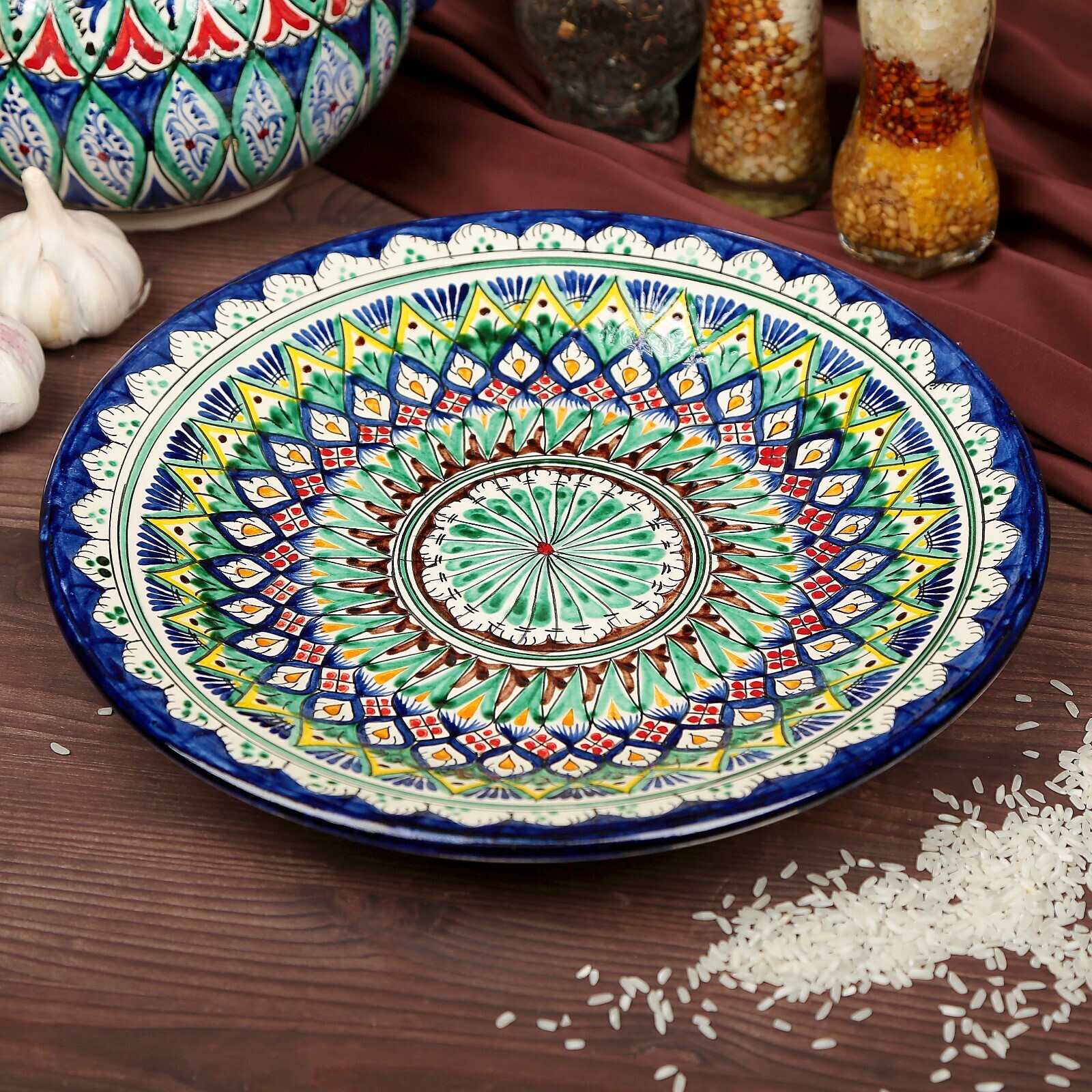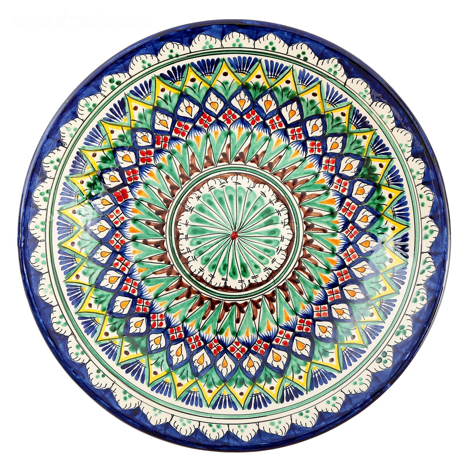 Тарелка Риштанская Керамика "Цветы", 27 см, синий