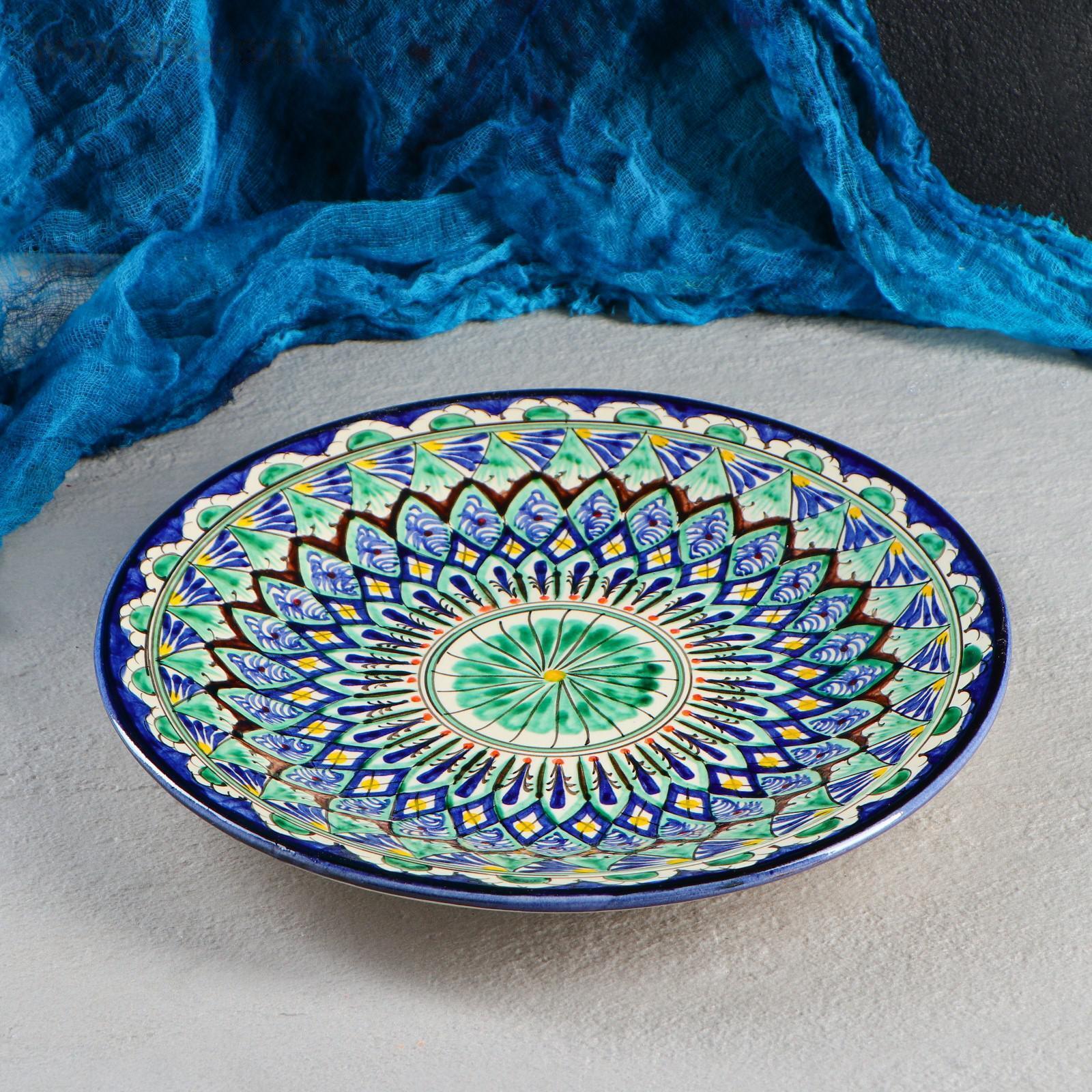Тарелка Риштанская Керамика "Цветы", 27 см, синий
