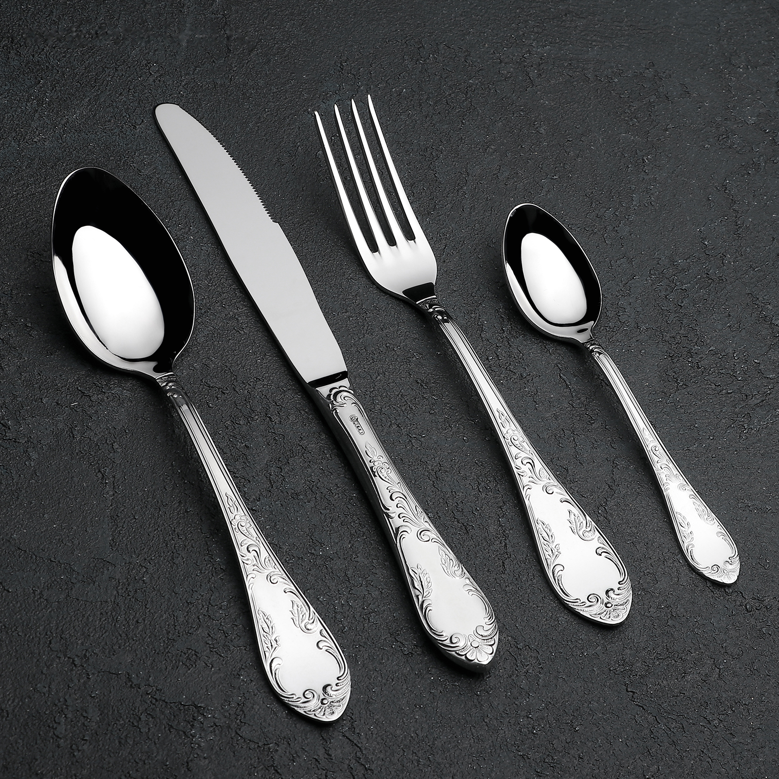 Набор столовых приборов «Посольский», 24 предмета, декоративная коробка, цвет серебряный