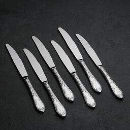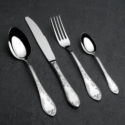 Комплект «Посольский» — отличный выбор для большого застолья. Приборы, украшенные изысканными узорами, помогут создать атмосферу торжественности и уюта.