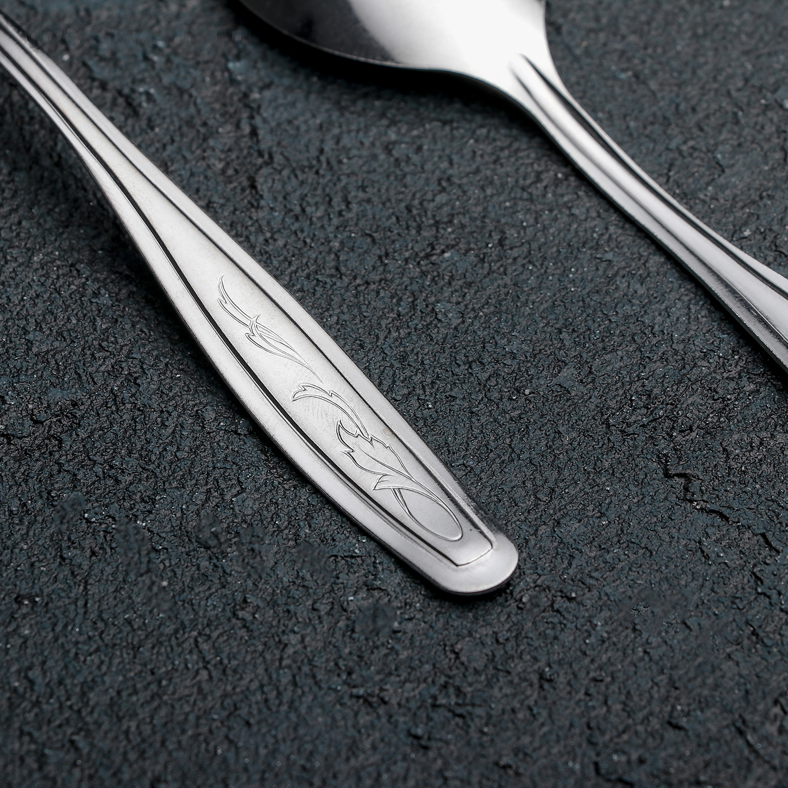 Ложка чайная «Силуэт», толщина 1 мм, упрощённой обработки, цвет серебряный – это продукт, выполненный из прочной нержавеющей стали толщиной в 1 мм и прошедший полировку до шероховатости 0,32 мкм. Лицевая часть изделия декорирована штампованным рисунком на основе растительных мотивов.