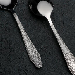 Столовые приборы серии «Дубрава» выполнены из высококачественной пищевой нержавеющей стали 18/0 толщиной 2 мм. Приборы легко моются обычными средствами и в посудомоечной машине. Благодаря хорошей обработке и оригинальному дизайну, столовые приборы изысканно дополнят сервировку стола, а также отлично подойдут для подарка родным и близким.