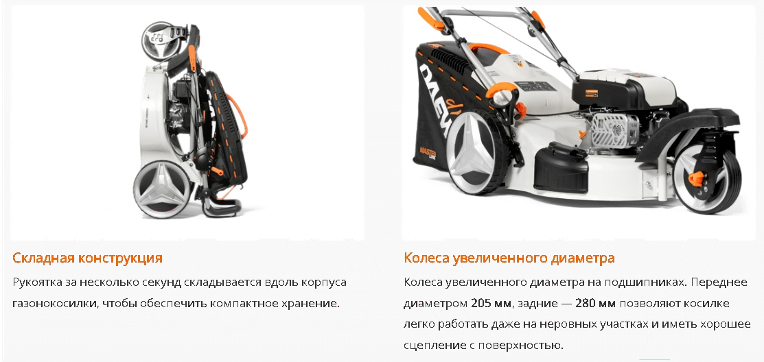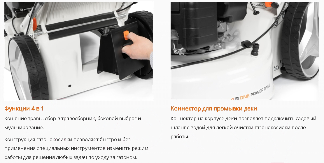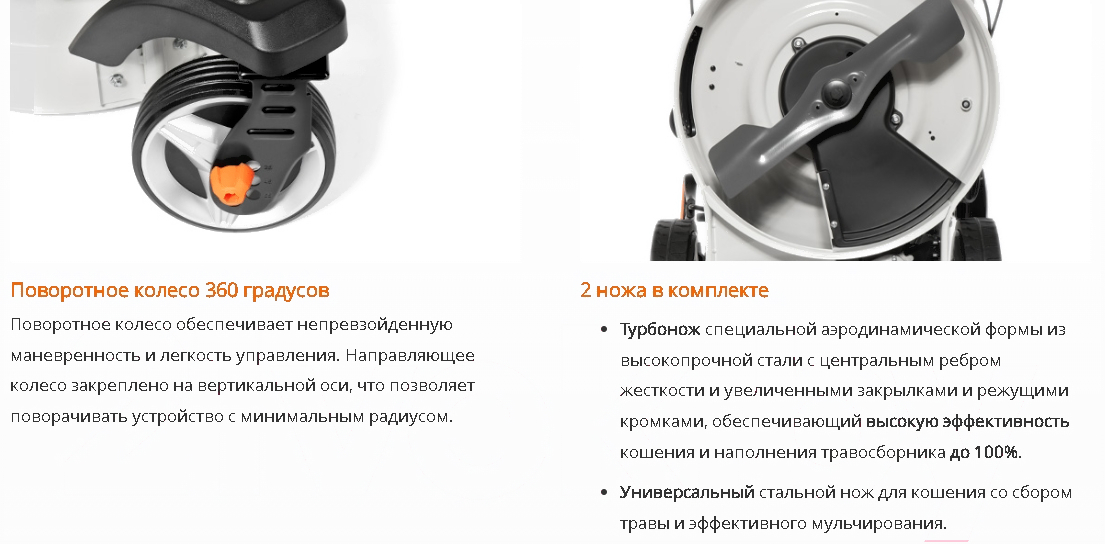 • В комплекте нож/диск (2 шт), устройство бокового выброса