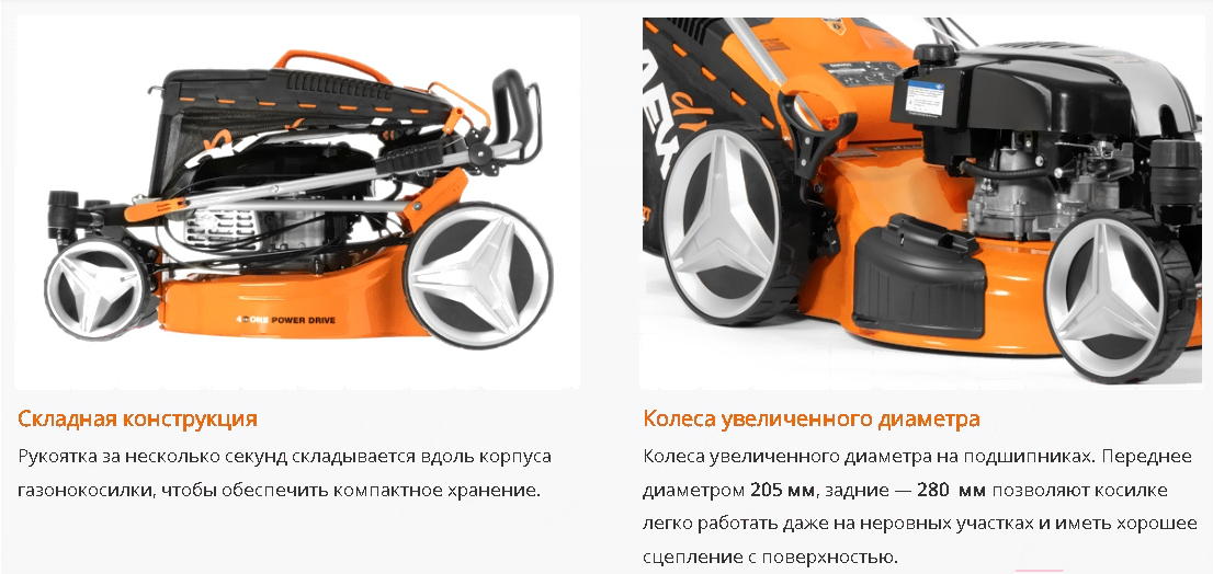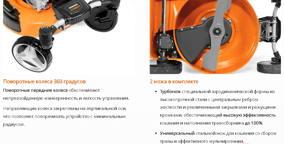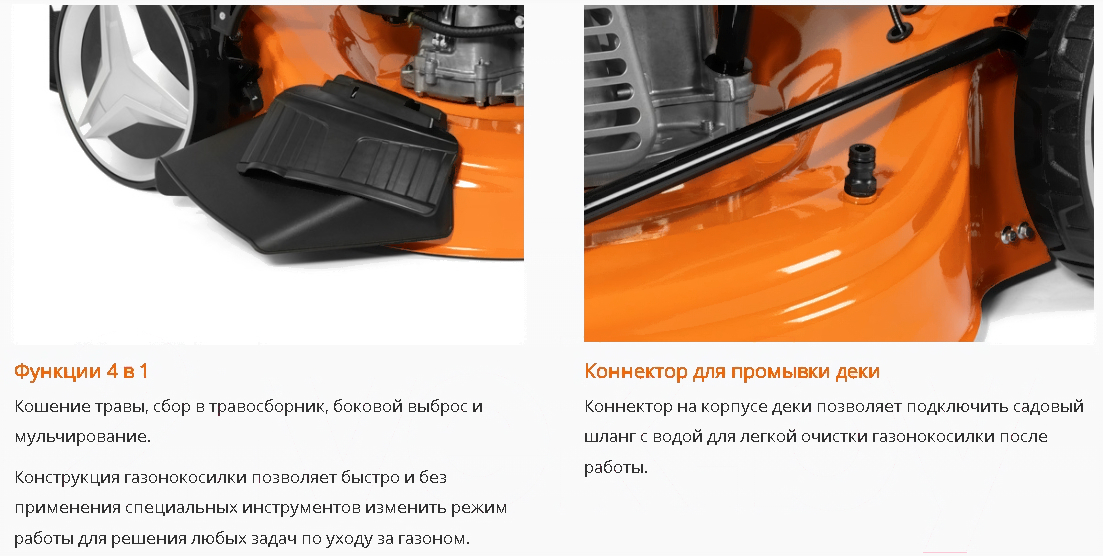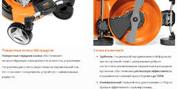 • В комплекте нож/диск (2 шт), устройство бокового выброса